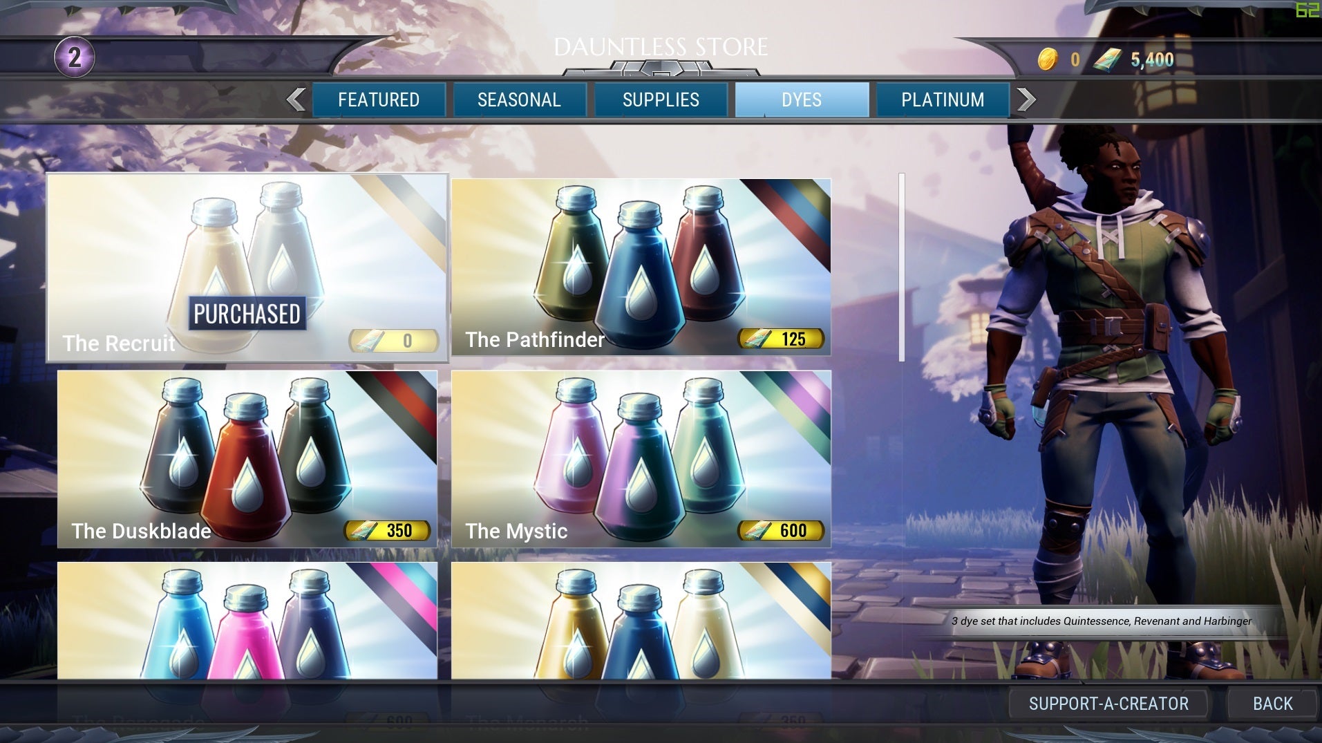 Finally, Dauntless is free-to-play, with everything that entails. It basically copies Fortnite's seasonal Battle Pass wholesale with its own Hunt Pass. The basic track of progression each season will reward you with platinum currency or players banners, but the real unlockable cosmetics are only available through the paid Elite Hunt Pass. There's a ton of customization, from dyes to transmogrifying your gear, but most of the dyes and transmog stones require real-money microtransactions. If you want to look fly, you'll probably be spending a little money, which will probably irk and anger some folks. In practice though, I can see myself just avoiding purchasing future Hunt Passes.