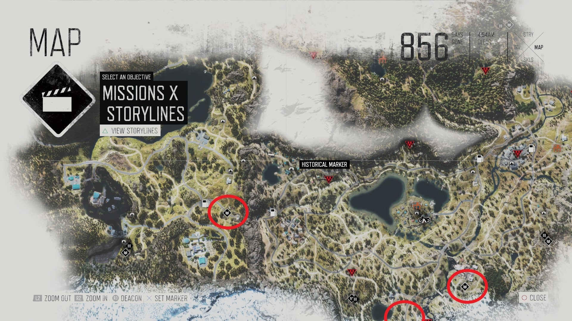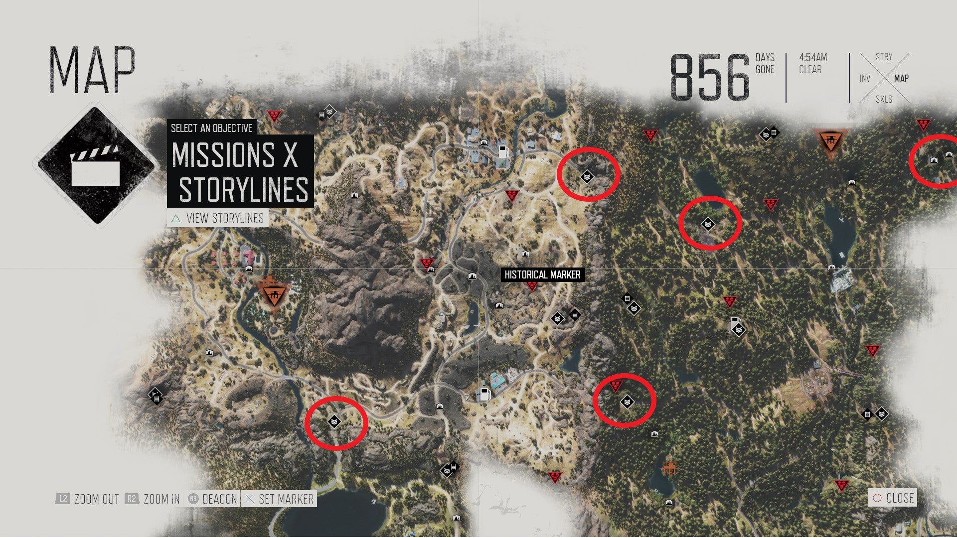 NERO Checkpoints are found all over the map in Days Gone. Each one hides a NERO Injector (more on that later) and once unlocked can be used as a fast travel point. They are represented as white crosses on your map, though will turn into black crosses once you restore power. Let’s take a look at where you can find them on the map.