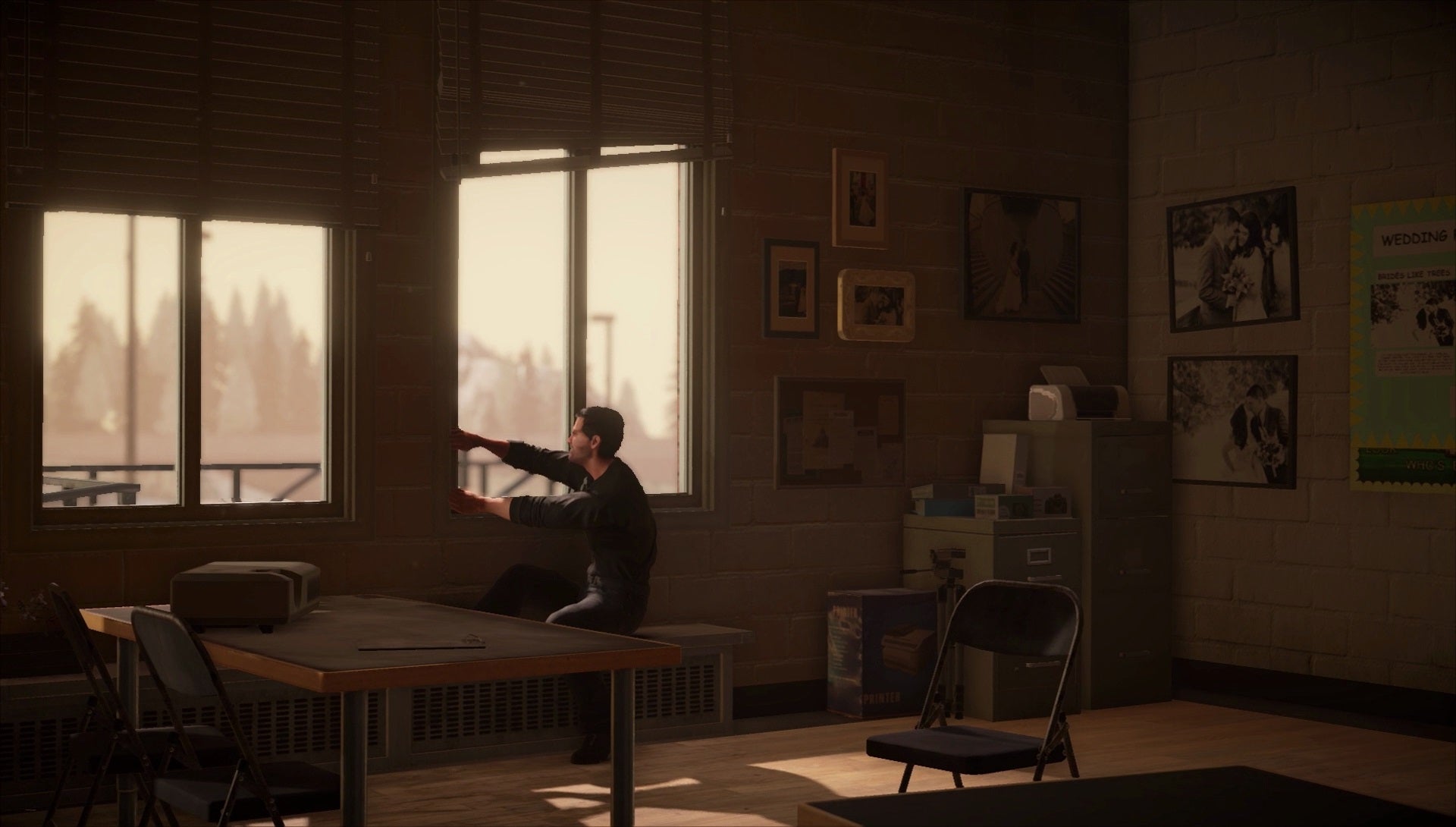 The overall story is still serious, but it's punctuated by moments of dark humor. West is painted as an old timer and a bit of a screw-up. There's an early scene where he tries to escape from Park by throwing a chair at a window, only to have the chair harmlessly bounce off. ("I though that would work.") West is full of an endless bravado that's not actually backed up by his abilities. It's an interesting balancing line for the game's overall story and one that actually works out pretty well. Not as over-the-top as the current Ash vs. Evil Dead television series, but in the same wheelhouse.