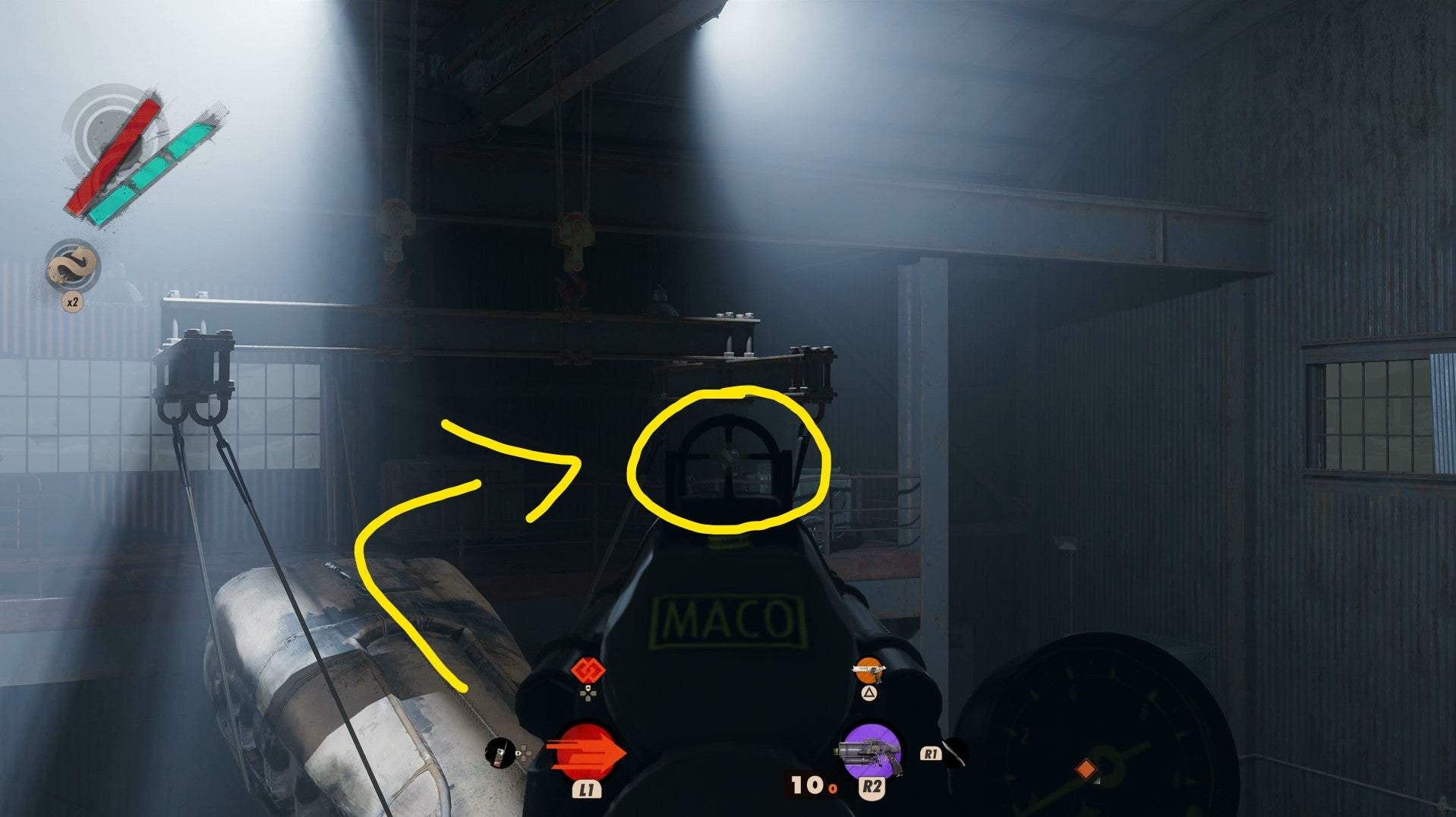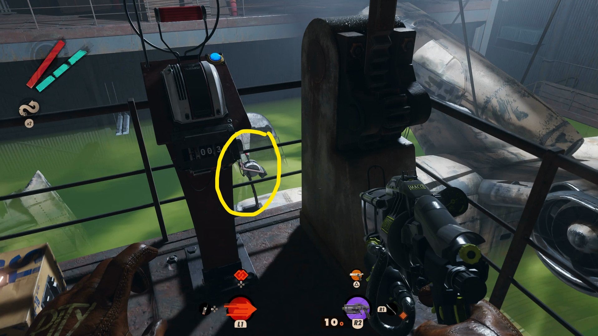 Now eerily empty, you might remember Hangar 2 from your time with Harriet during Karl’s Bay morning. This time though, you have it all to yourself, save for the toxic gas choking the floor below.