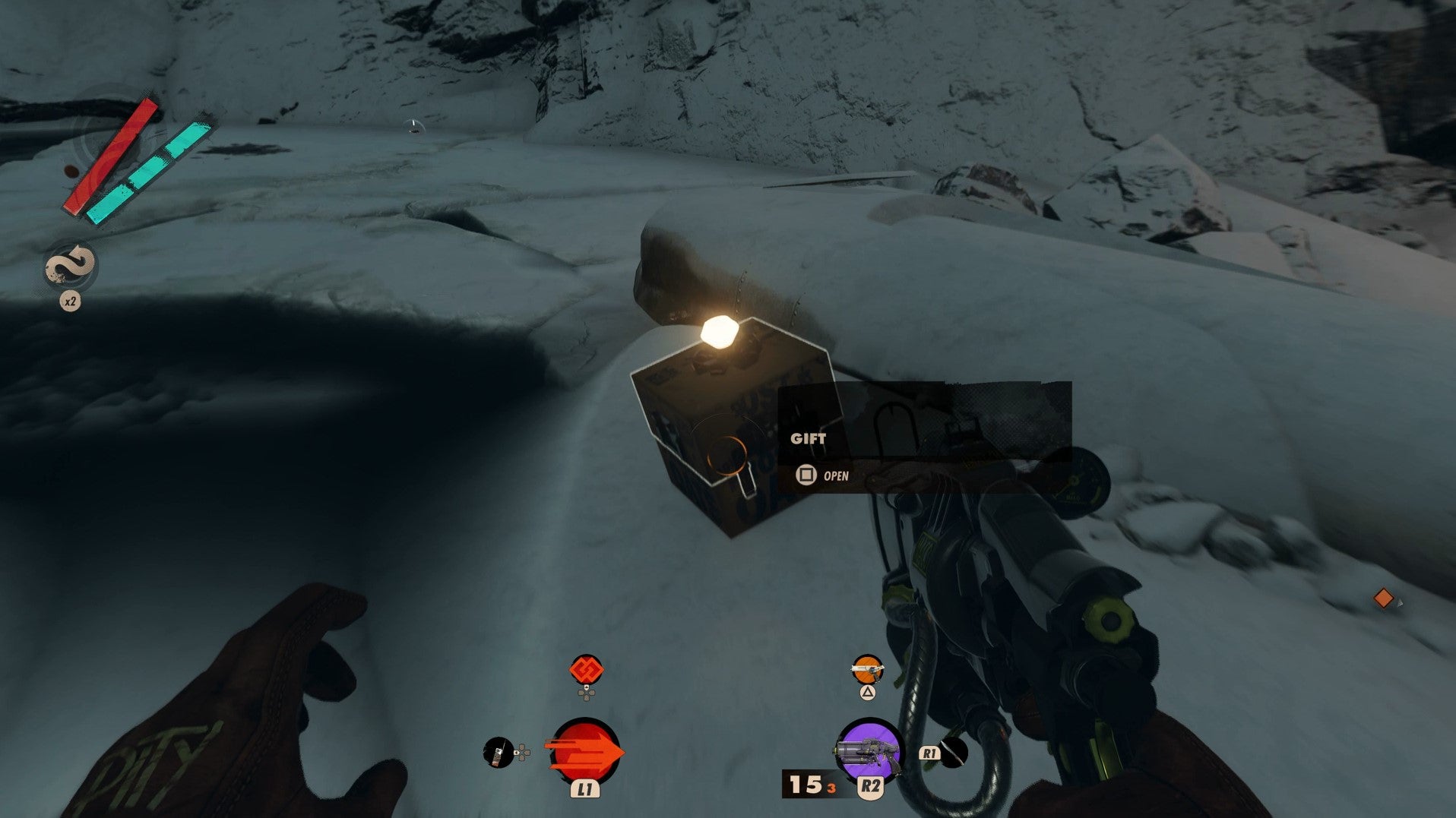 Here, you’ll find a map filled with blinking lights and the Heritage Gun twinkling at you from its locked case. These lights indicate active presents scattered around the Karl’s Bay area, all of which you will have to open without damaging to succeed.