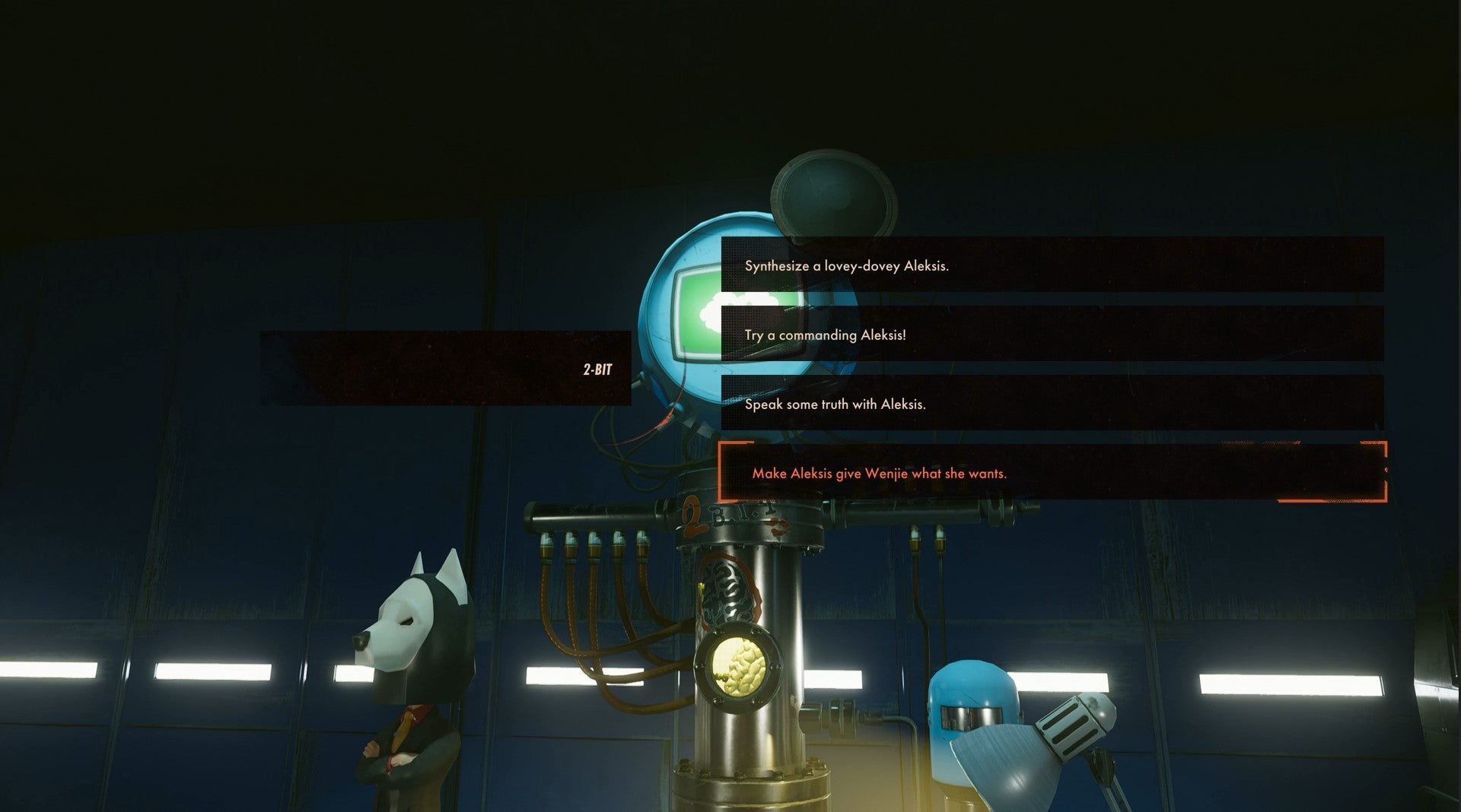 2-Bit will then play the invitation to Wenjie on all subsequent cycles. This means unless you kill her earlier in the day, Wenjie will now appear on a roof terrace at Aleksis’ party in Updaam in the evening as well as her usual location.
