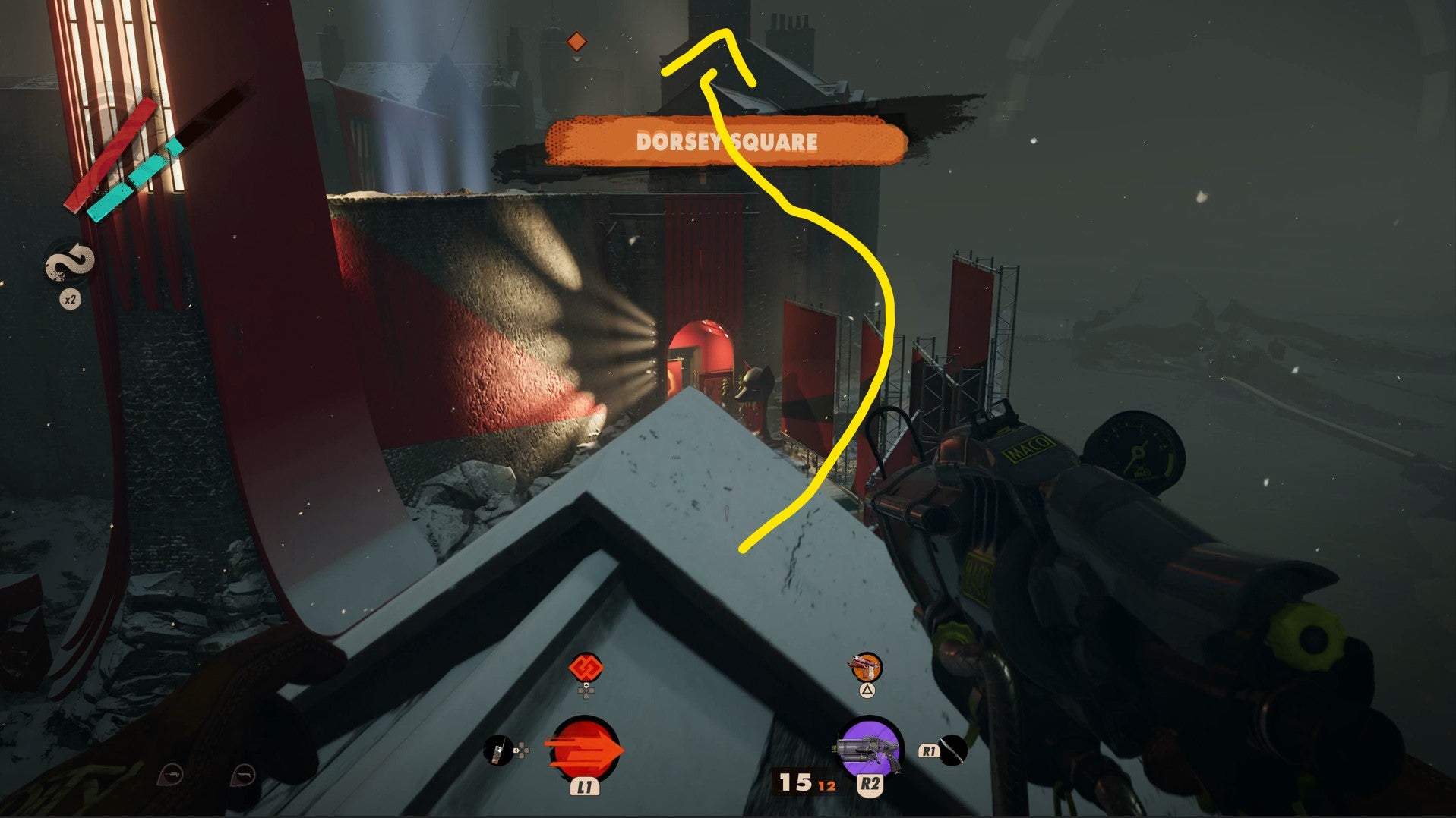There’s quite a simple and stealthy method to getting the information you need. In front of Dorsey Manor, climb on the billboards above the front entrance, then Shift onto the room.