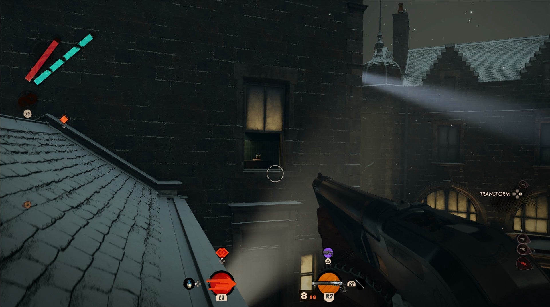 Bear right and stay on the rooftops, then Shift to the rooftop in front of you.