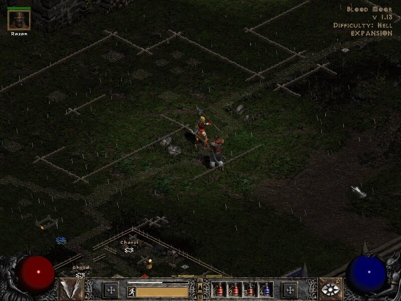 Diablo II's first Act intentionally heaved returning players out of their comfort zone. "Tristram's setting in Diablo was what we referred to as the Irish countryside, and in fact, the first act of Diablo II was again going to be set in the Irish countryside," Max Schaefer explained. "We started Diablo II in the wilderness to get you out of Diablo's city-and-dungeon-underneath format. You immediately say, 'This is different' when you start up the game. We're opening up the world, and things work differently, now. It was a clean break from the vertical design of the first game."
