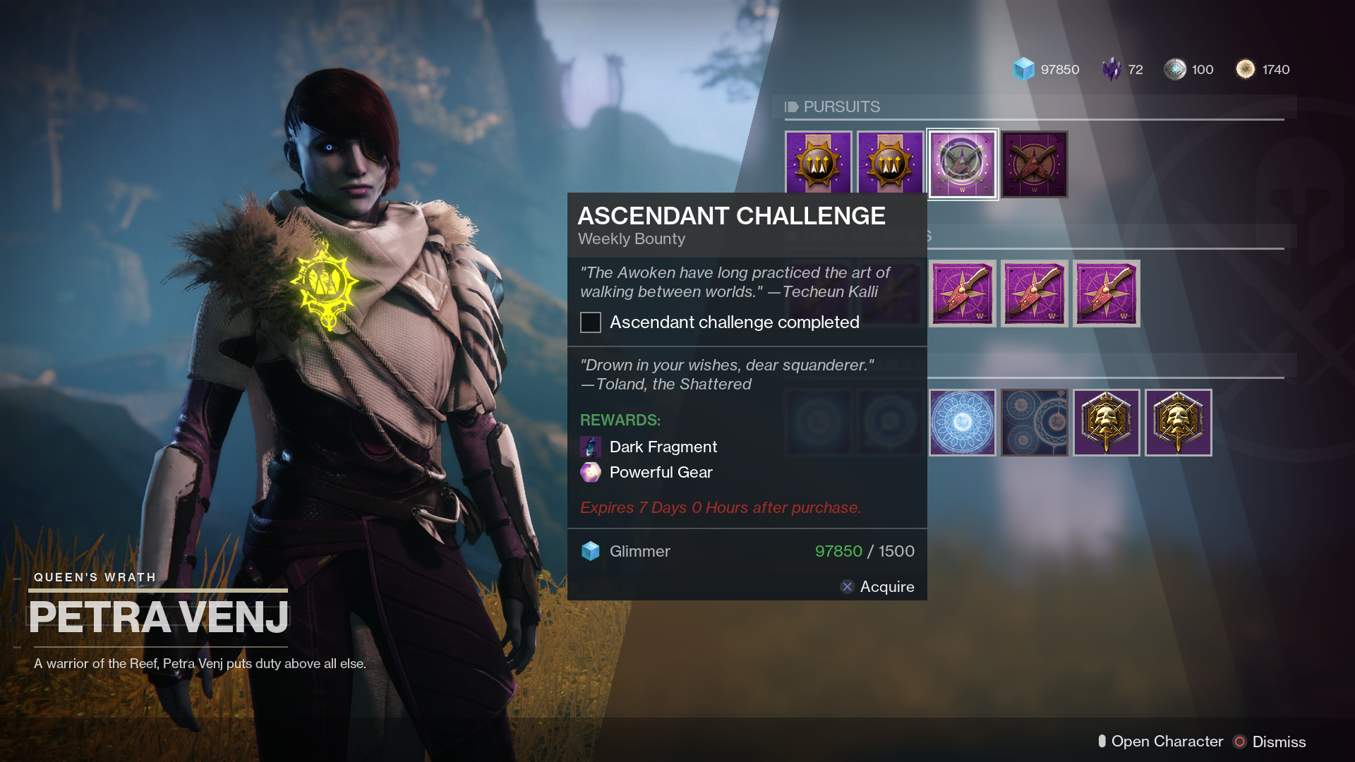 Petra Venj has moved to The Strand this week and has a variety of new Daily and Weekly bounties to complete. Upon speaking to her, she’ll remark on how “everything looks the same as it did three weeks ago”; I have a funny feeling she’ll be eating her words soon enough.