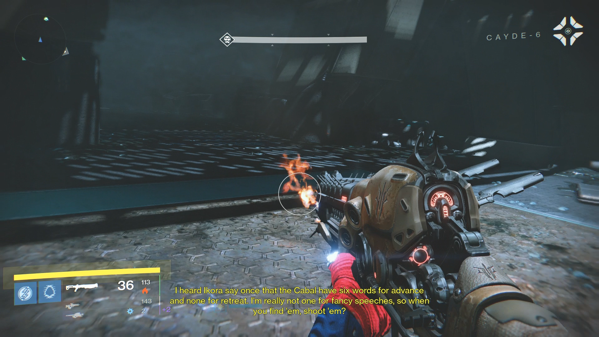 Even in The Taken King’s massive aftermath, like the Shield Brothers strike, Cayde’s fun to listen to. He has lines talking about the craziness of Cabal loyalty, surmising that the Cabal might be rigging the Dreadnaught to blow in a suicidal attempt to get their commander back or explaining how Cabal are thrown out of the Empire when they join the army. His dialogue is equal parts enjoyable and informative, and when you finish the mission, he tells you that you did good work by putting these war criminals down. He tells you to be proud, because this is what the Vanguard is all about.