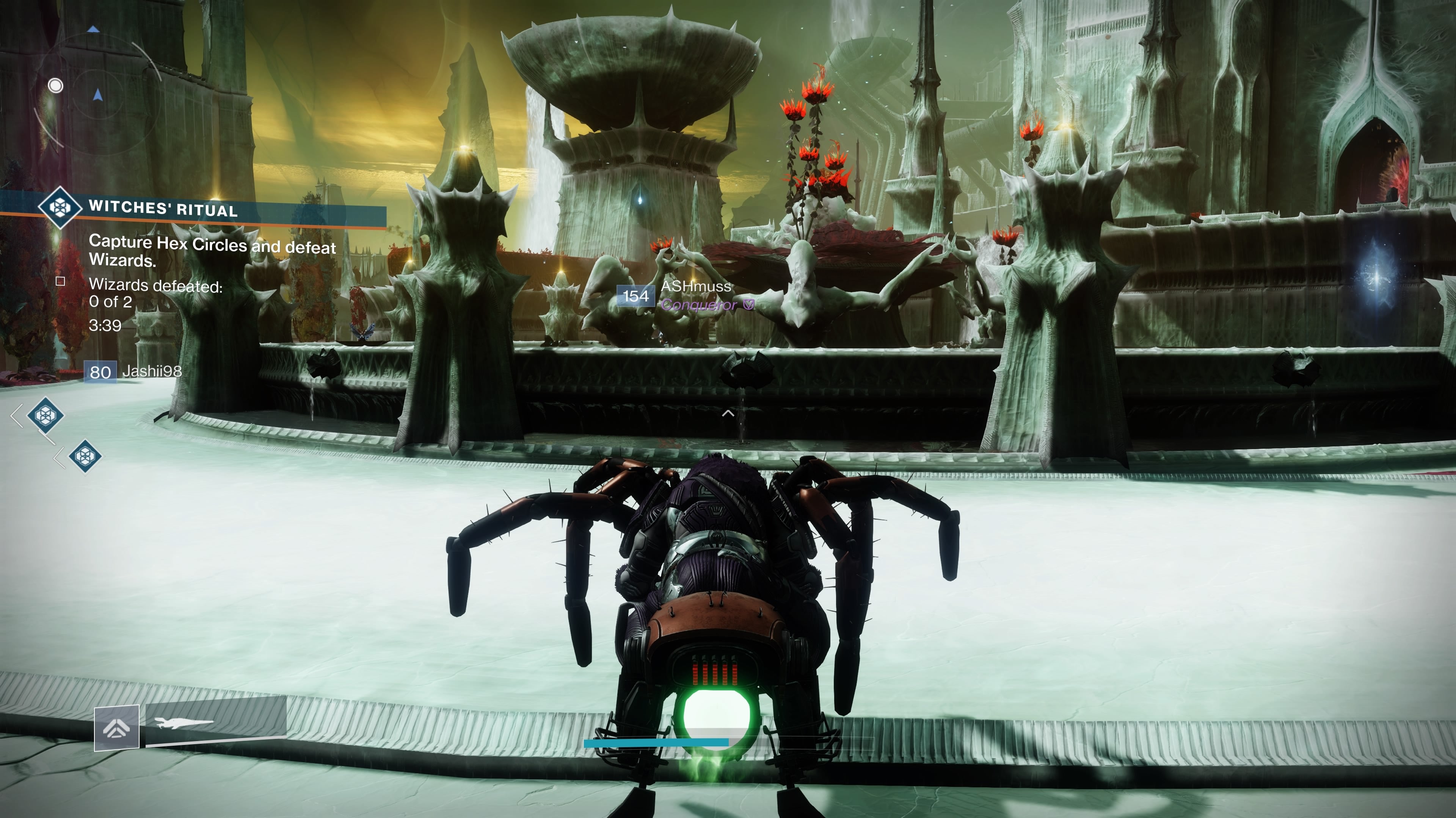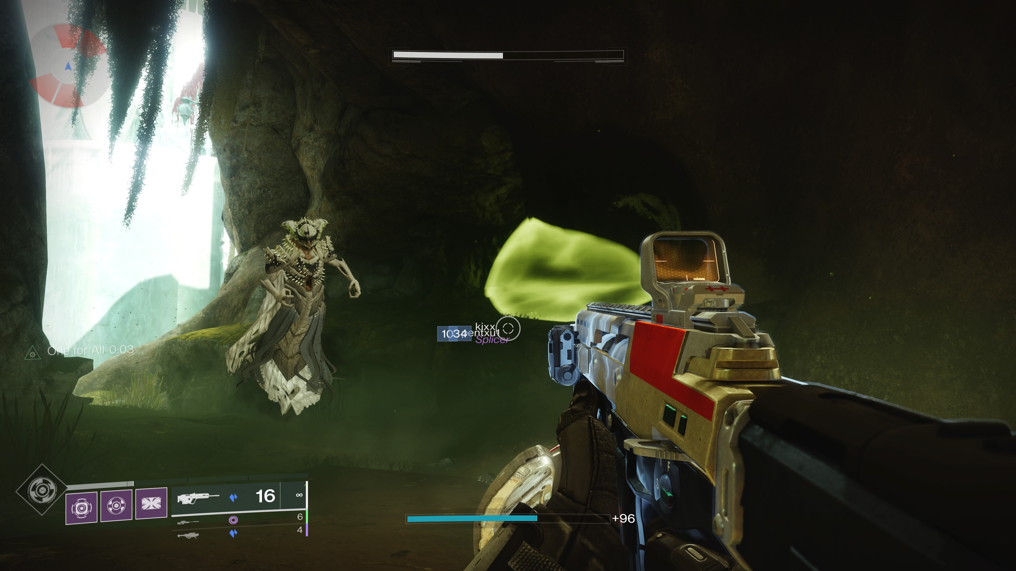 Once you're inside, continue down into the Witch's Echo until you reach a large green room with black cannisters hanging from the ceiling. There should be a few hive in this room too. Kill them, and you'll be free to track down an illusion in the corner of the room.