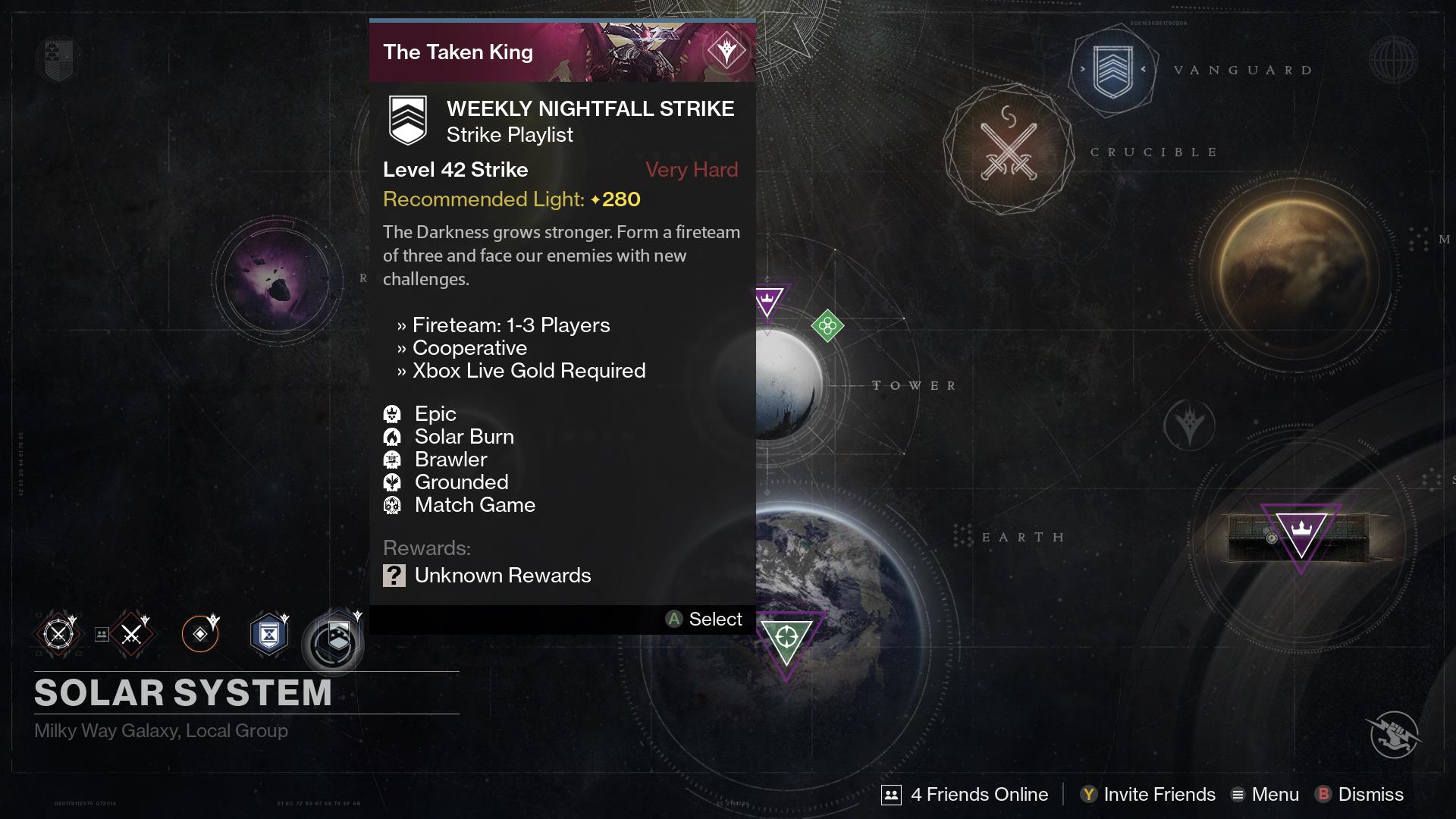 Weekly Nightfall: The Undying Mind is this week's strike with Solar burn, Brawler, Grounded, and Match Game. Brawler increase your melee damage. Grounded makes it so you take more damage while in the air. Match Game requires you to have the correct elemental weapon to go through enemy shields.