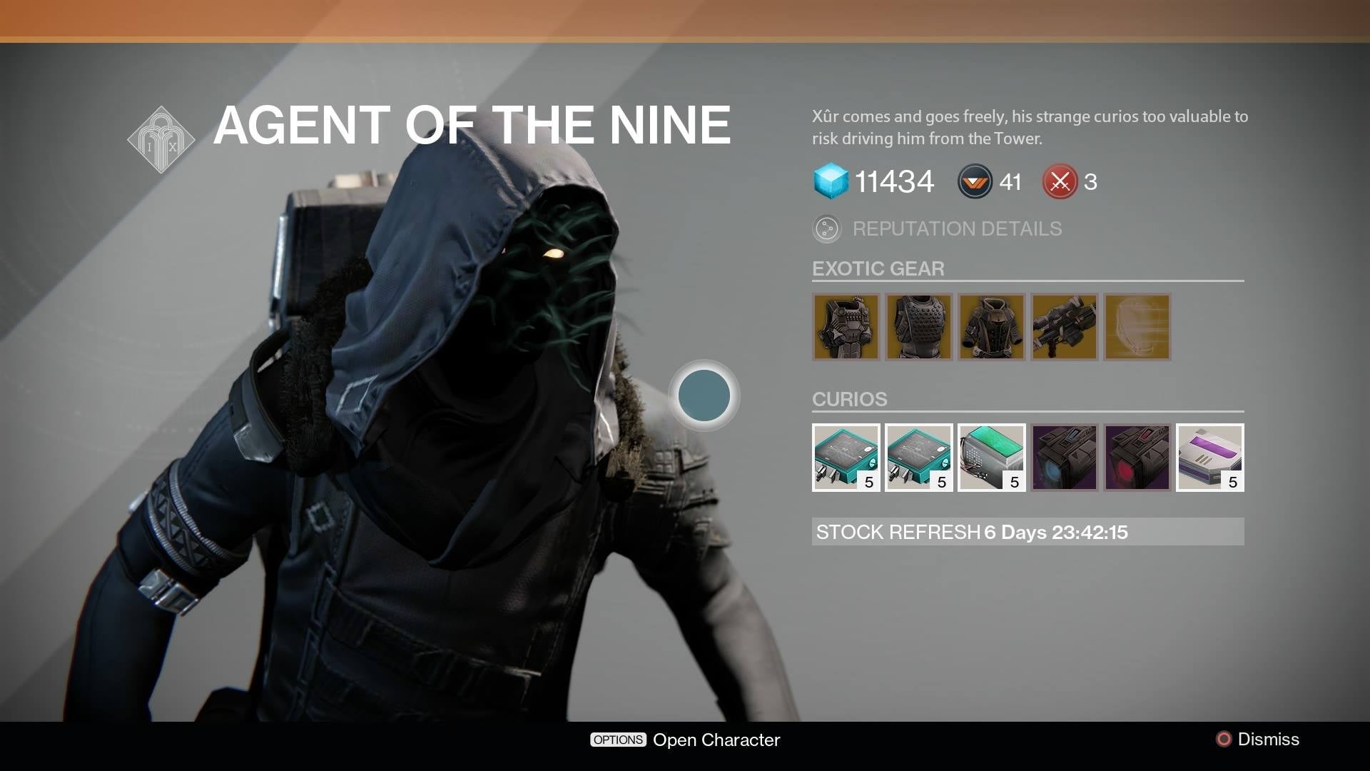 Xur: Agent of the Nine is back again for the weekly exotic trading. As always you can use only Strange Coins to buy any of the exotic gear or weapons he's selling and Motes of Light for the engrams.