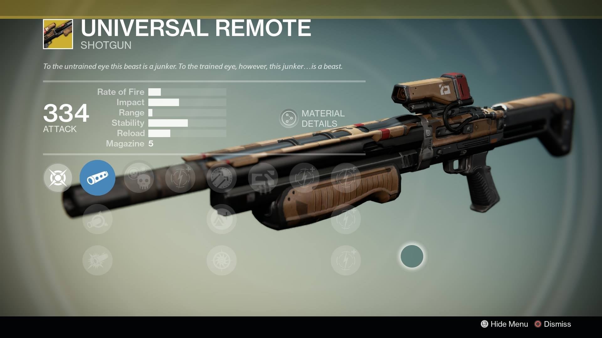 Xur is selling the Year 2 Universal Remote this weekend in Destiny. Universal Remote is a shotgun you can equip as a primary, meaning you can essentially run with two shotguns.