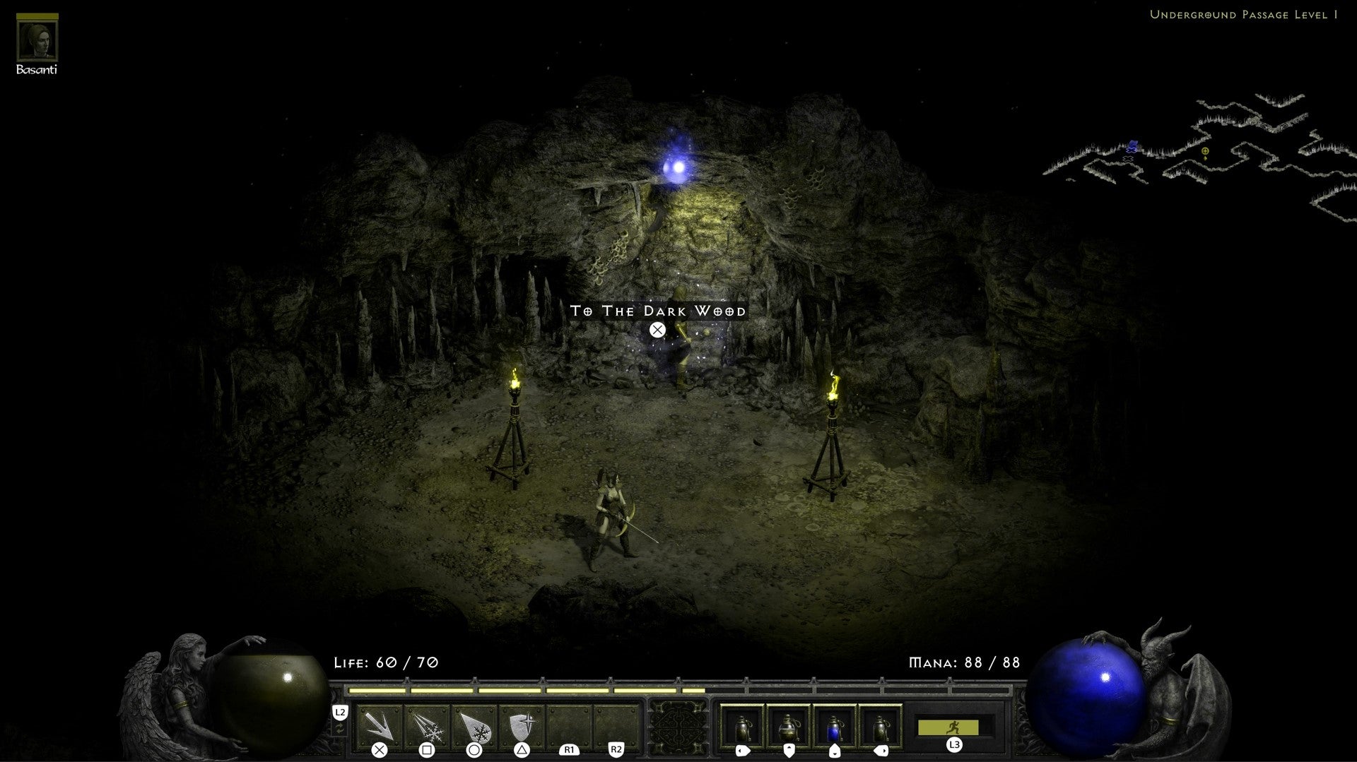 Head through level 1 of the Underground Passage and deal with the (many) threats along the way. At some point on the first level, you will find the exit to the Dark Wood.