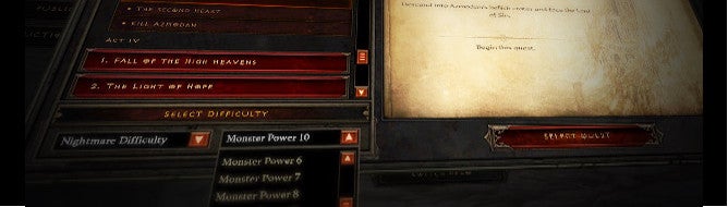 "The option to adjust Monster Power will be available to all players starting at level 1 through the Quest Selection window, and can be adjusted separately for Normal, Nightmare, Hell, and Inferno difficulties."