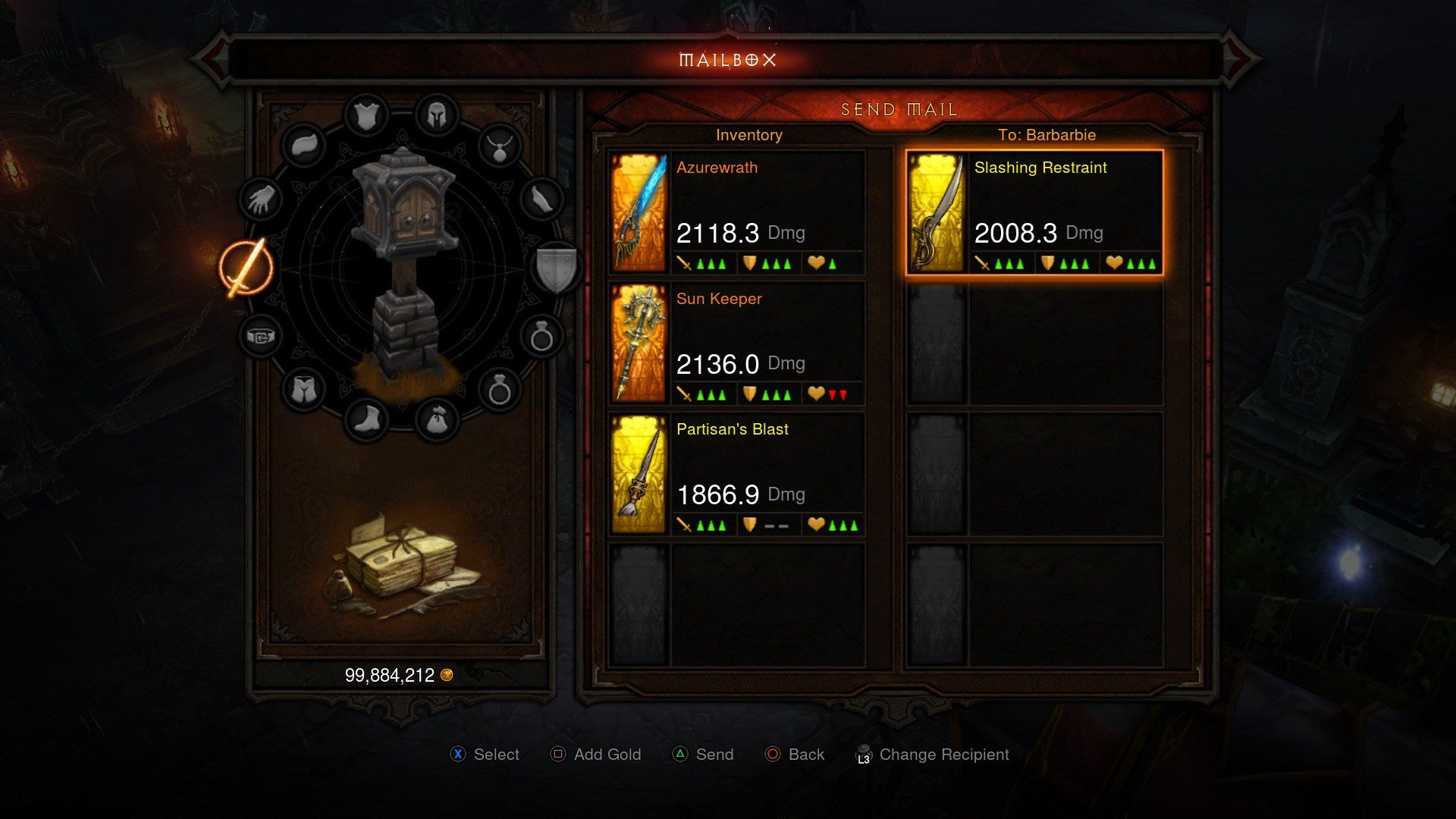 In releasing Ultimate Evil Edition, Blizzard has seen fit to make a number of welcome tweaks to the interface, dramatically streamlining the loot allocation for console owners. Green arrows and red arrows are useful shorthand for understanding whether or not a particular piece of loot is useful or not (though more advanced users will still want to examine the stats for themselves), and the game's logic does a good job of automatically parceling weapons and armor to the right classes. As expected, it also runs at 1080p and 60 FPS, and though no one would ever accuse Diablo III of being a graphical powerhouse, it nevertheless looks very nice on next-generation consoles.