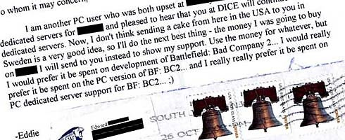 Battlefield: Bad Company 2 developer DICE has published a letter from a disgruntled Modern Warfare 2 fan who's taken the step of sending the company $60 - the money he would have spent on the Infinity Ward shooter had it included dedicated servers.