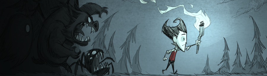 Don't Starve casts players in a randomly generated 2D world with no supplies or tools. Players must gather food in line with the titular warning, but gathering is inefficient unless the player rapidly masters crafting and explores widely, and there are worse dangers than hunger.