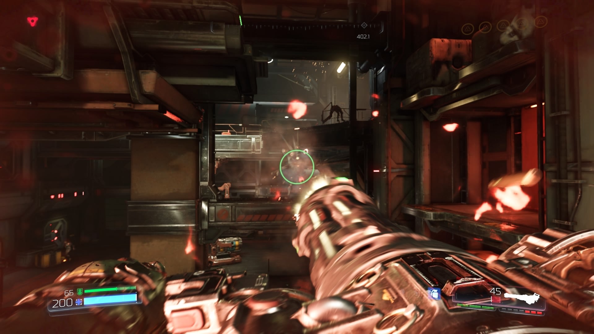 Jumping into the single-player campaign, the first thing that struck me was Doom's tremendous sense of speed. This is one very fast-playing game, both in the sense that its action moves along, and the way it encourages you to aggressively tackle its challenges. There are no cover mechanics, and you need to stay on the move while fighting – if you stand still for even a short length of time, you're likely to get nailed by one or more of the myriad of demons that populate each level.