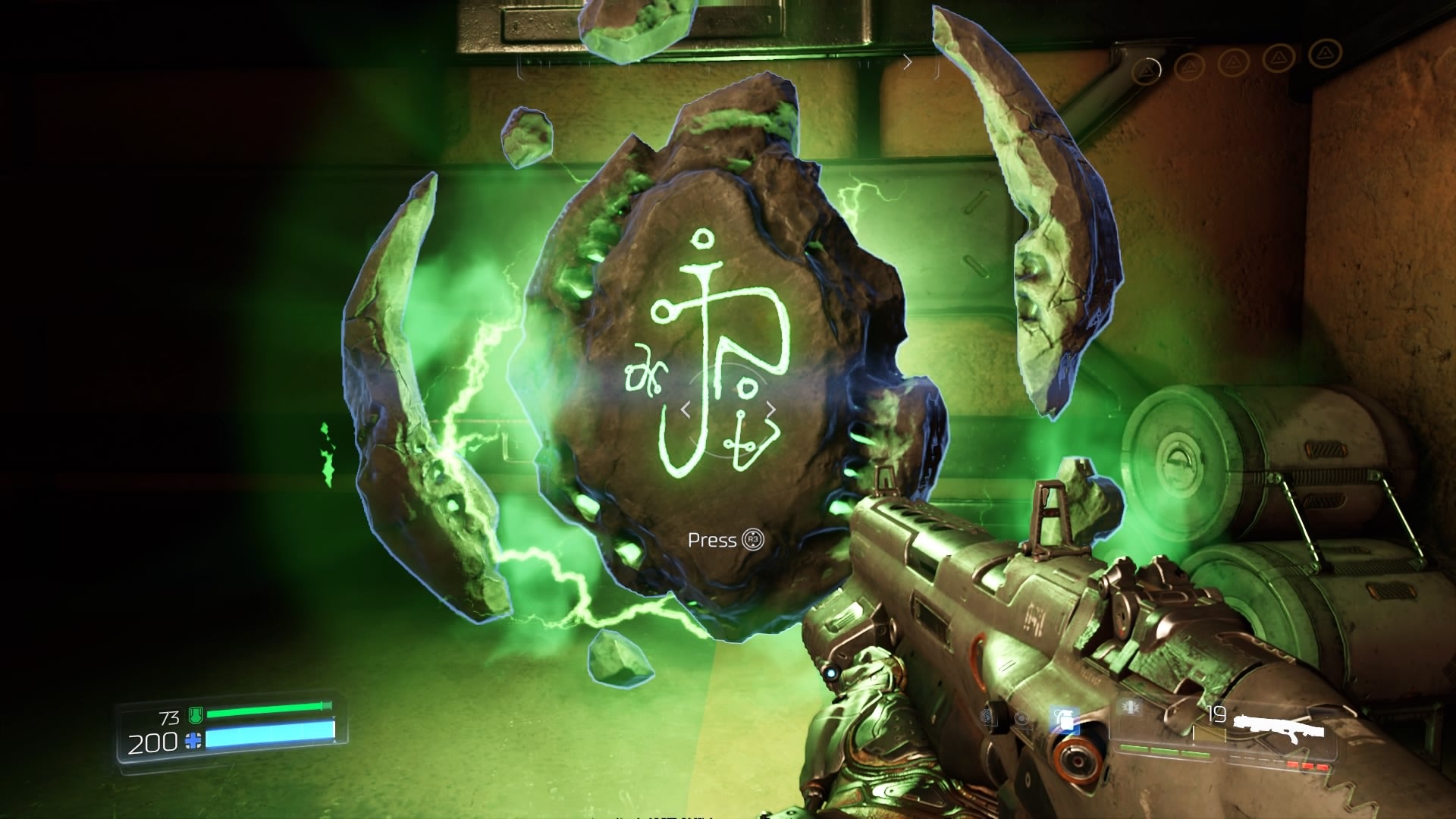 Another new aspect to the game is upgradable weaponry. I love that Doom features a classic array of weapons: There's the shotgun and super shotgun, plasma rifle, rail gun, rocket launcher, and heavy assault rifle. In default mode they're all hip-shooters, and feel great to use. However, you can upgrade them with mods that you can find hidden throughout the game, and then use L2 to fire advanced shots. In this fashion, for example, you can lock on to the enemy with the rocket launcher and fire a burst of three rounds in short succession, or build up heat with your plasma rifle and let it rip as an AOE effect. It's a neat idea that helps add a little additional depth and dimension to the way the weapons work, and opens up a few new tactics while fighting hordes of demons.
