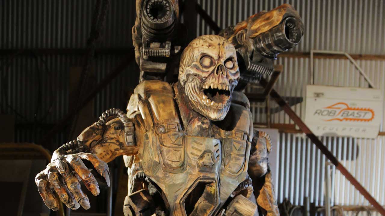 To celebrate DOOM's launch today (in this timezone), Bethesda has sent over video footage of the creation of a Revenant sculpture carved via chainsaw, the most delicate of artist's tools.