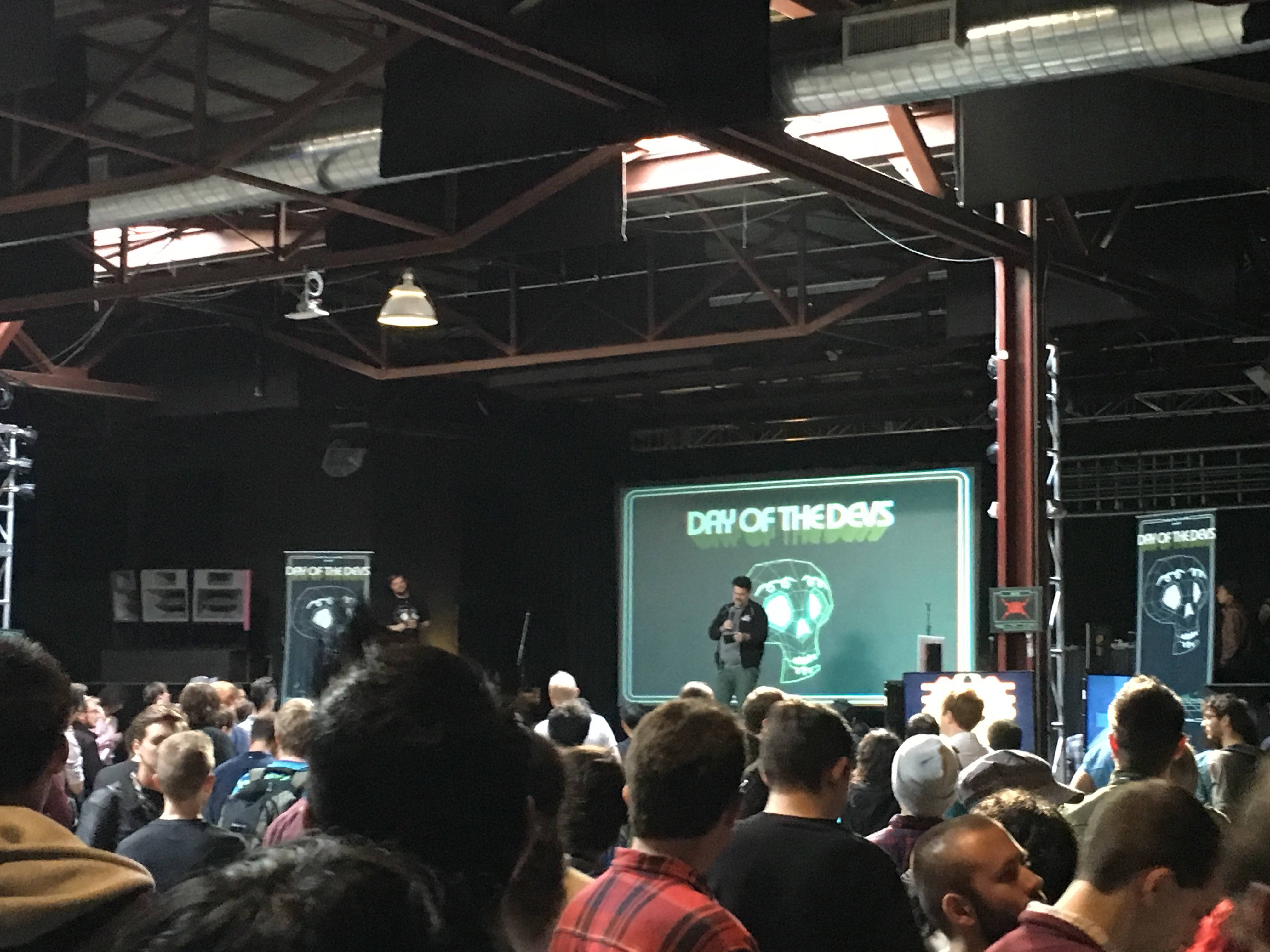 A line of fans had already begun to form when I walked up to Day of the Devs two hours before it opened this past Saturday. Only the fact that they were predominantly younger and wearing gaming paraphenalia betrayed the fact that they were there to see video games; otherwise, it could have been any one of the many independent showcases that dot San Francisco these days. With rent constantly rising, artists, hackers, and craft brewers have taken to using old industrial spaces to show their wares, and so are game developers.