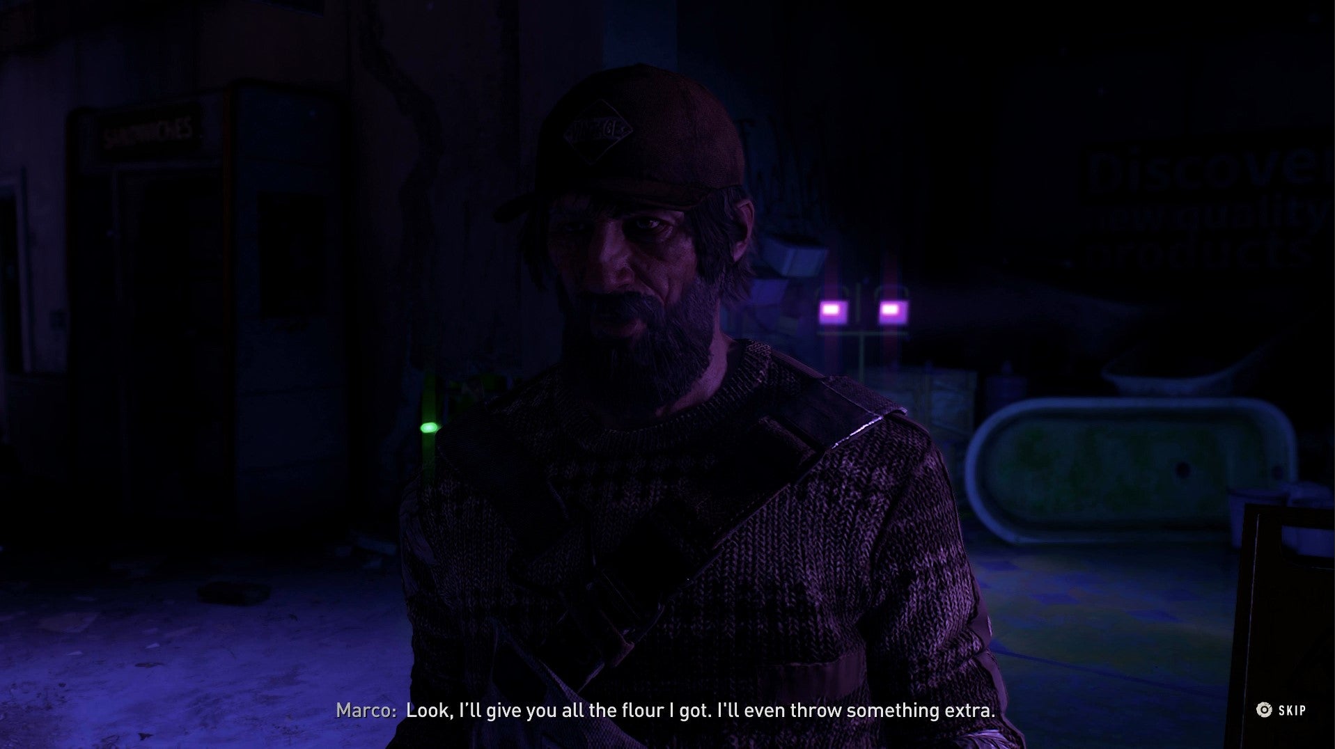 Ask him what he’s talking about, and he’ll reveal that Julian sold him flour mixed with plaster, then ask you to deal with some infected on the floor below.