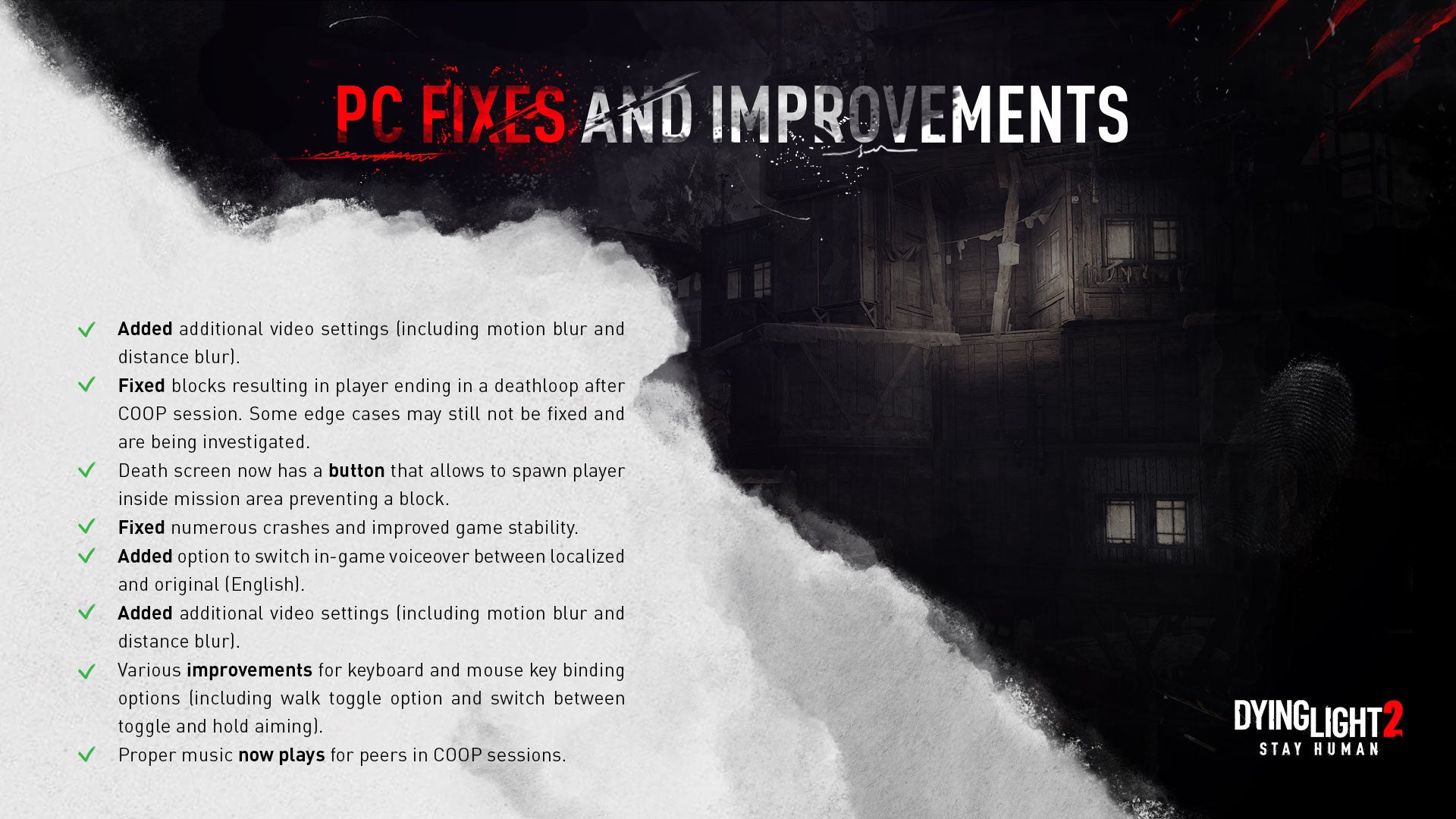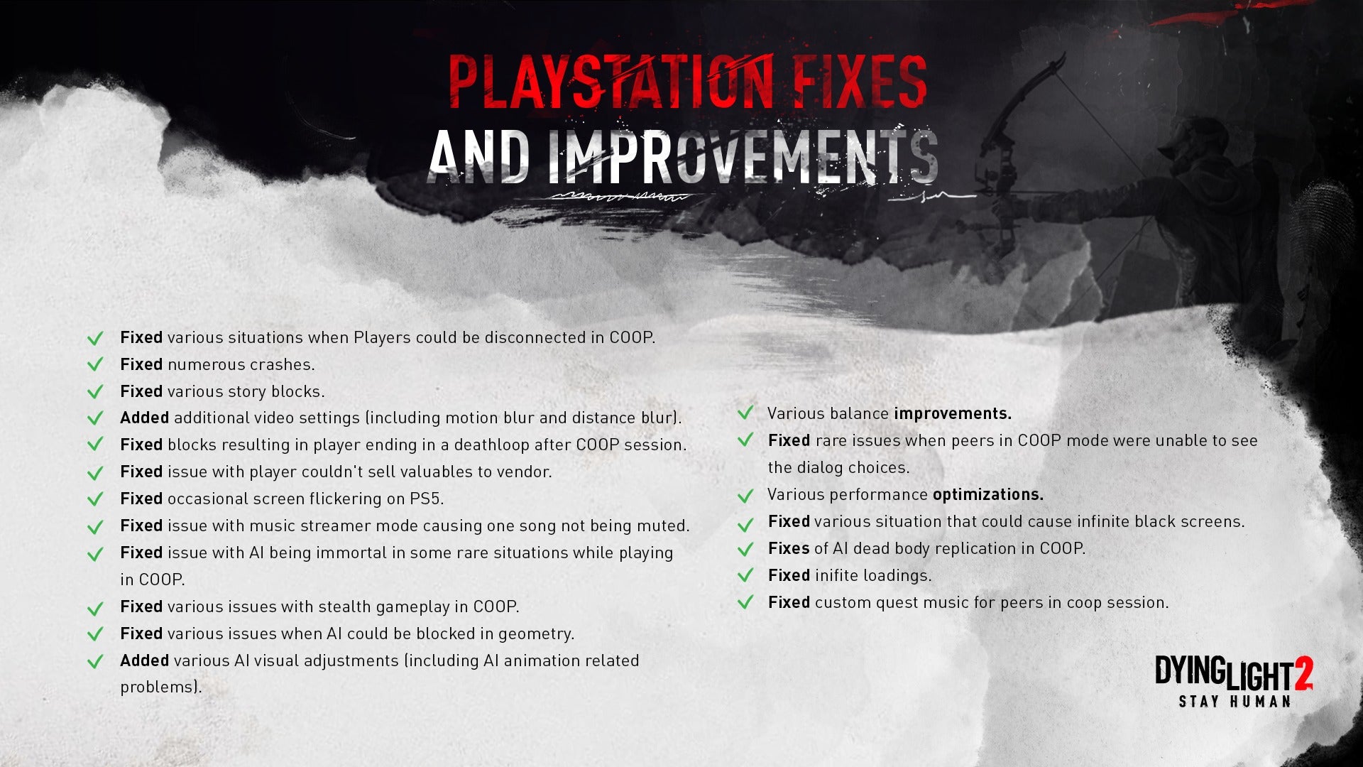 A new update for Dying Light 2 has been deployed for PC, PlayStation, and Xbox.