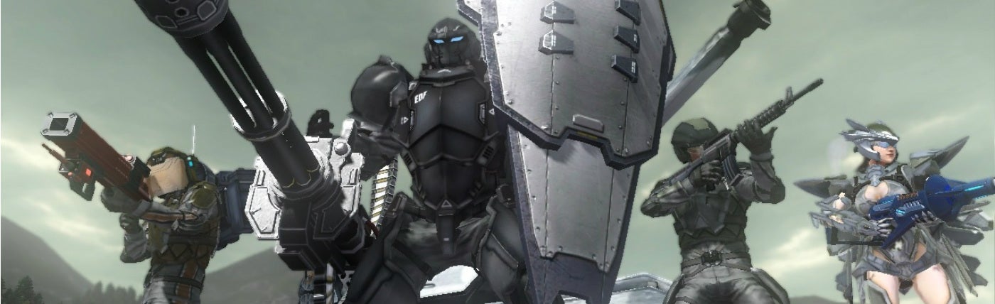 The four classes don't play like each other at all. The Ranger class is your basic soldier: choose your two weapons, run, jump, and shoot your way through everything. They're the most versatile class, but also the most vanilla. Wing Divers are the only female model in the game, with jump jets to fly high above the fray, but with weaker (because it's missing?) armor and a weird laser shotgun weapon. Air Raiders don't raid any air at all: this is the support class that can call in vehicles and airstrikes. Finally, there's the Fencer, a soldier wearing heavy power armor who can carry four weapons into battle. You can unlock over 100 weapons per class, but I largely found myself sticking with a chosen few for most of the game.