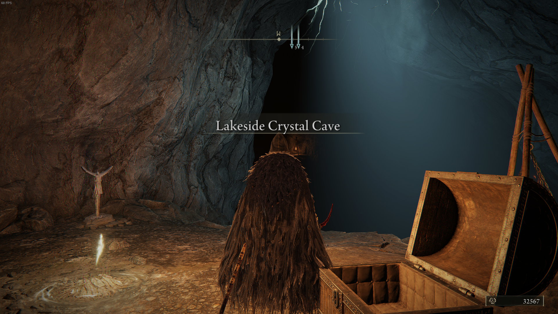 Lakeside Crystal Cave is situated in Liurnia of the Lakes. You can get to the cave by going to the Slumbering Wolf's Shack Site of Grace and travelling directly north.