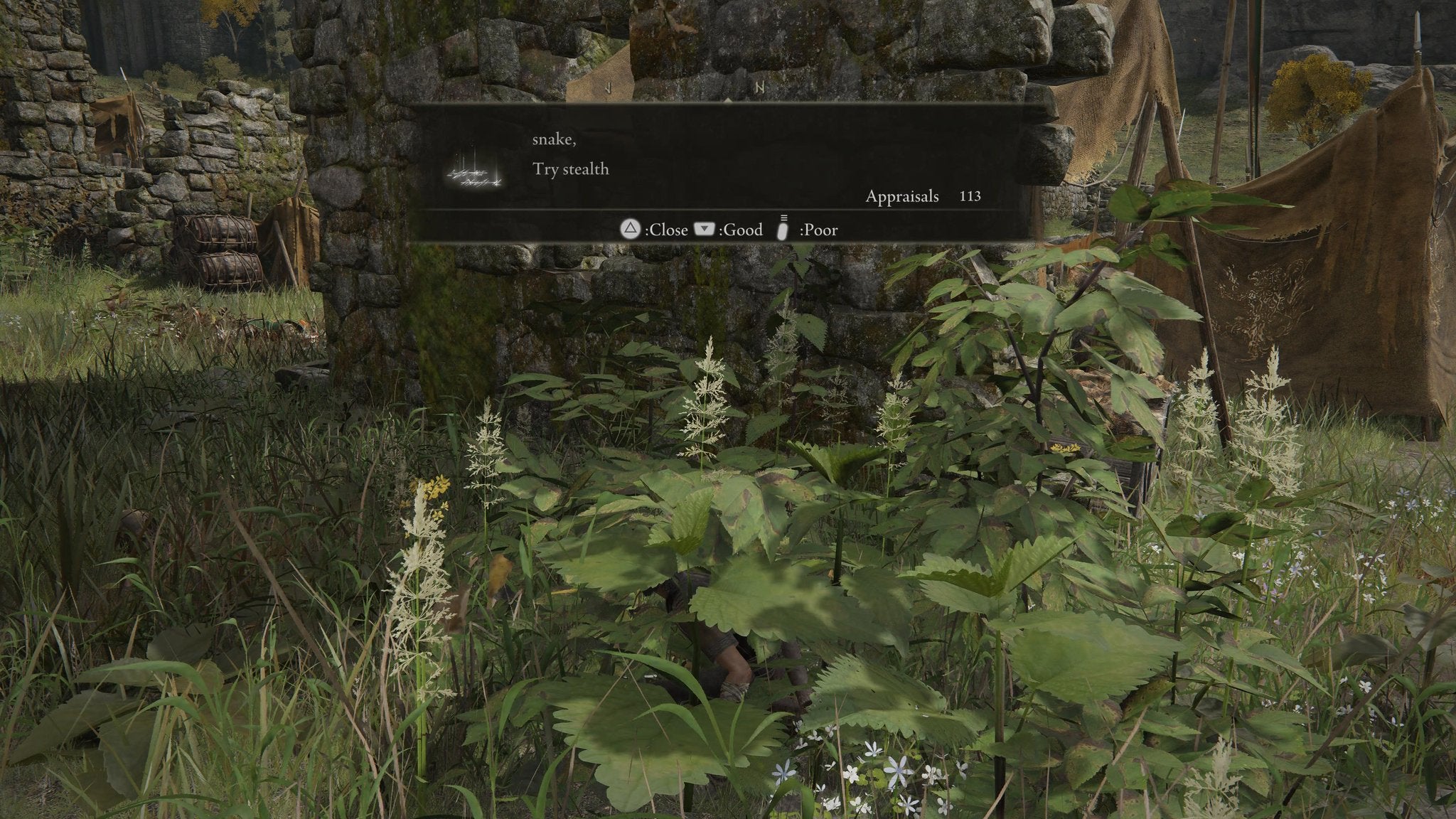 Other players have been a little bit more creative with their take on the messaging system. One player we've seen on Reddit hid a message in a bush that reads "Snake, Try Stealth' – a nod towards Kojima's Metal Gear Solid franchise where the writer presumably couldn't just type out '!'. The top commment in the replies – “Try to the remember the basics of CQC” – gets the point of this one.