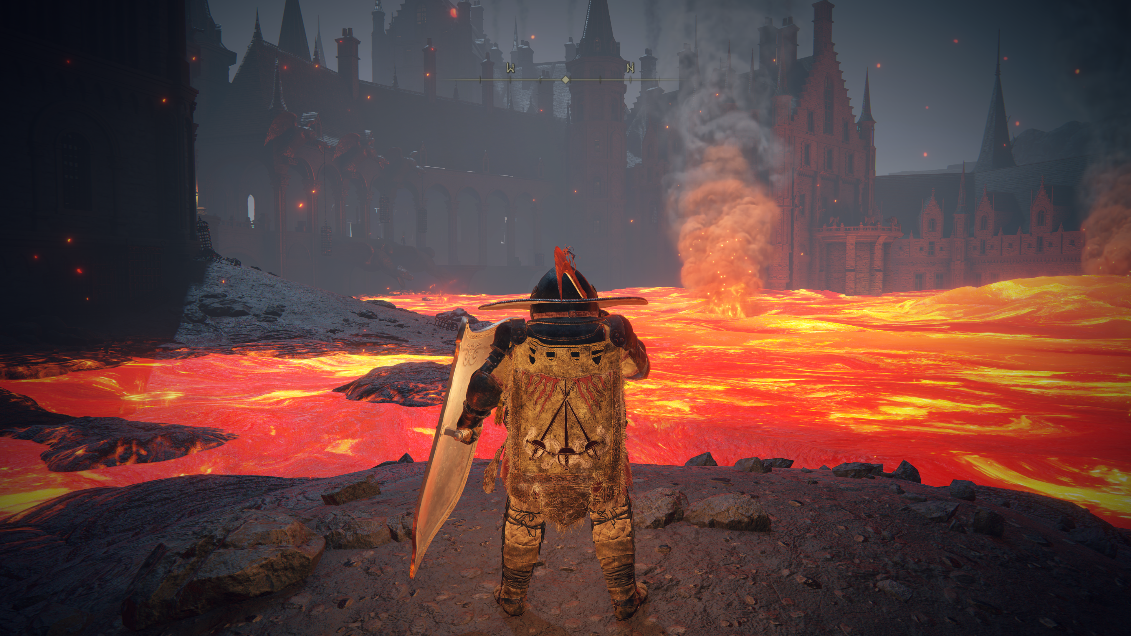 Take in a view of Prison Town’s gothic architecture and its hellish inhabitants (of course, it’s also got rabid dogs roaming its cobbled streets), and it does feel like you’ve wandered into Yharnam, albeit one built on lava. We are essentially on top of a volcano, after all. However, the way you find the secret hidden passage down below the manor, before reaching a small church and slowly opening its double doors, also reminds me of the way hunters explore Yharnam’s Cathedral Ward... only to discover that Old Yharnam lies just beneath it.