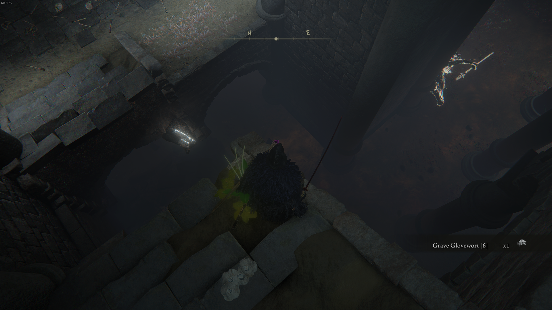 In the corner opposite the corpse that had the Silver Pickled Fowl Foot, you can exit the room. The next room is full of grass, and there will also be some Fanged Imps lurking. At the back of the room, there is more Grave Glovewort.