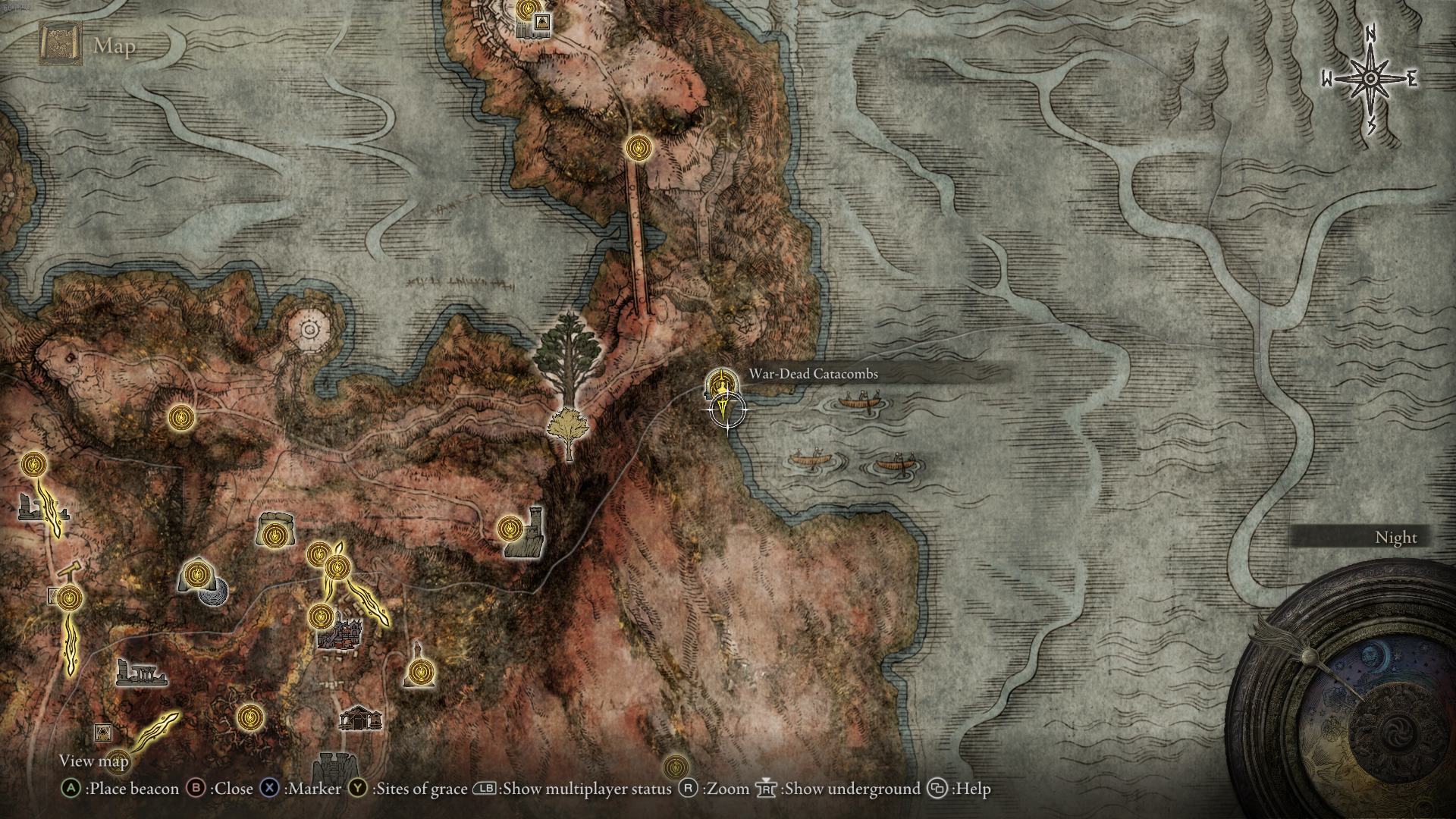 First things first, the War-Dead Catacombs can only be accessed after you have fought with and felled Starscourge Radahn. While at Radahn's huge boss arena, you'll need to travel to the northernmost corner to locate the catacombs.