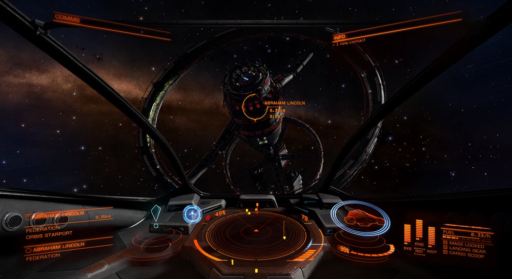 Once you get your head around the actual process of getting from planet to planet, though, things begin to open up. At base, Elite: Dangerous is an open-galaxy MMO in which you are competing with thousands of other players to make money. The quest for money can take many forms: Combat, mining, piracy, or simply hauling rare freight (both legal and illegal) for the best possible prices. All of this is against a backdrop of conflict as various factions battle against one another, encouraging you to either take sides or simply prey on the fringes. It wouldn't be accurate to say that it's like EVE Online—no one player can rule the galaxy or set up a killer organization—but it is possible to have a significant influence on galactic events, become a notorious pirate, or simply while away your hours mining asteroids in the middle of nowhere.