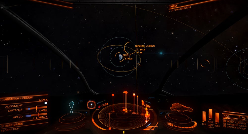Okay, that's an over-simplification. In reality, Elite: Dangerous defies description. It is kind of whatever you want it to be, provided that your desires exist within the framework of flying around in a spaceship. You can become a member of the Federation military, linger around the Nav Beacons and hunt bounties (my favorite pastime), or you can be a space trucker. At its best, Elite: Dangerous feels vast, with a million things to do at any given time. Every time I feel like I've wrapped up my space errands for the day, I get five more things to do, and then it's suddenly 4 in the morning and I'm wondering why I'm not sleeping like a normal human being.