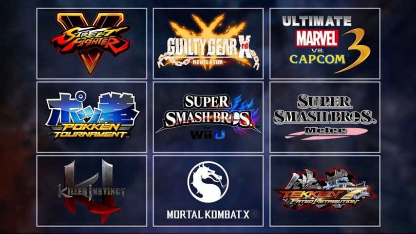 Street Fighter 5, Super Smash Bros. Melee, Mortal Kombat X, Guilty Gear Xrd Revelator and Ultimate Marvel vs Capcom will be showcased during the Sunday finals.