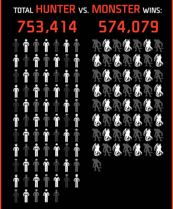 Participants in the tester player 1,327,493 rounds and total Hunter vs Monsters wins, found the humans winning out 753,414 to 574,079.