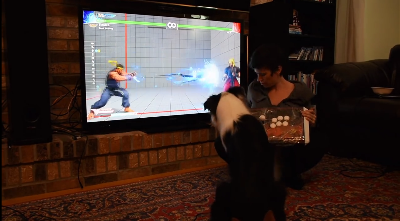 Some dogs can roll over, others can play dead; this dog can perform the quarter-circle punch action required to use a Hadoken attack in Street Fighter 5.