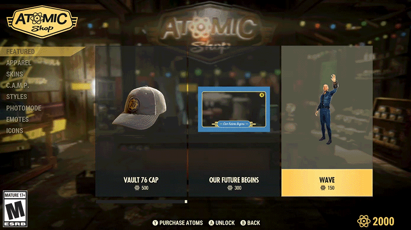 Atoms are essentially Fallout 76’s answer to microtransactions. They can be earned by completing certain challenges in the game, or by purchasing them with real money. They are pretty easy to get mind, awarded for completing a huge variety of tasks. Once you’ve collected enough, you can head over to the in-game store to purchase skins, outfits, emotes and various other cosmetic items.
