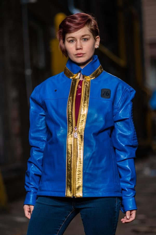 - Asymmetrical back seam, metallic gold piecing and bicep arm pads all inspired by the Vault Suit