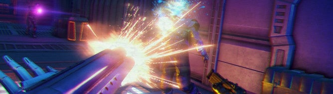 Evans said of Blood Dragons wild setting, "I'm certainly a bit tired of shooters that take place in a modern setting and that have quite a lot of warfare. So it's nice to be able to just f**king go off and do something else. Things don't have to make much sense.