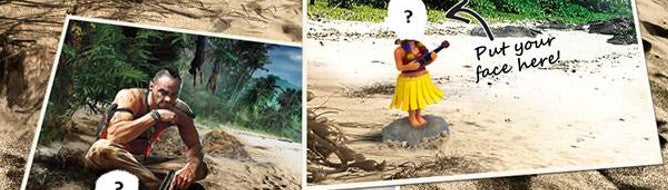 Far Cry 3's 'Holiday From Hell' Facebook app is live now, letting users stamp their mug on select pieces of official game art. Want to be buried in the sand next to villain Vaas? - no, we don't know why anyone would either - well now you can.