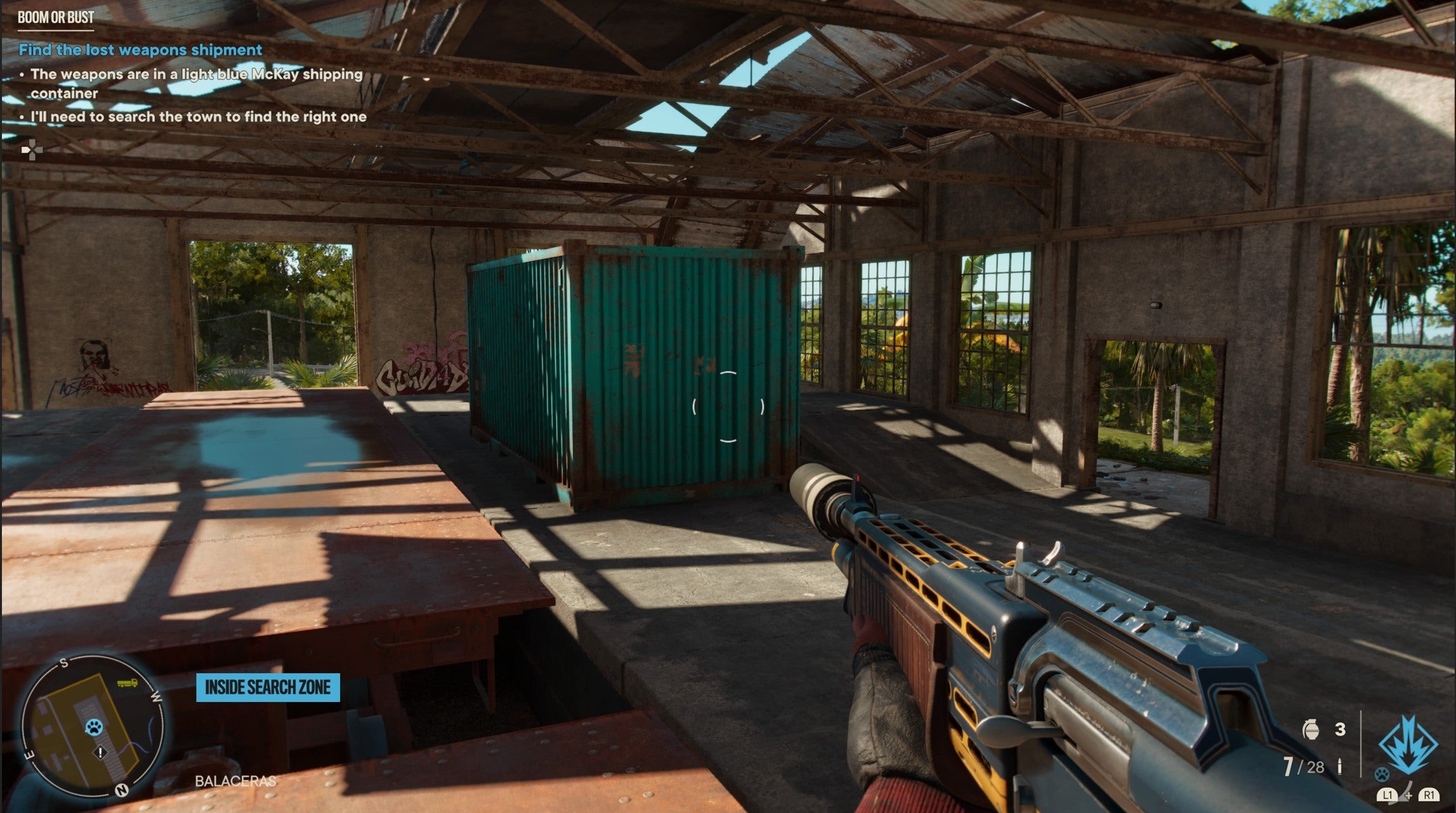 In the marked town, there are light blue shipping containers dotted around. In the southwest of the town, you’ll find what you’re looking for.