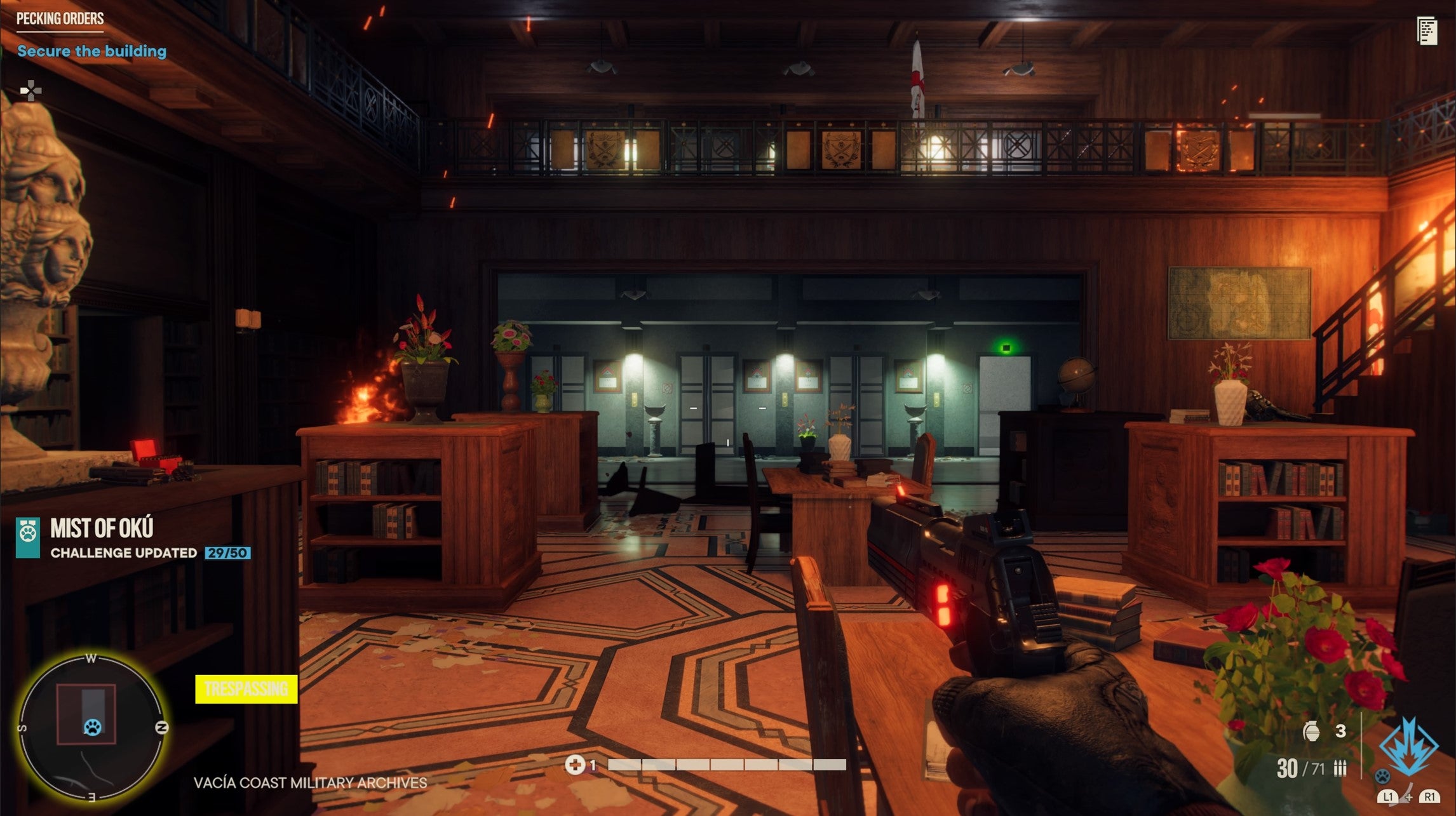 If you’re struggling to complete the second Chicharron mission, try shooting the bookshelves with incendiary rounds.