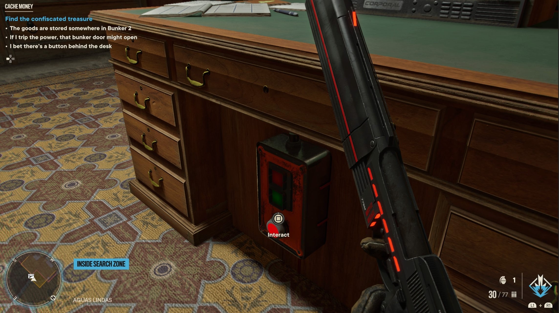 Cache Money triggers once you arrive at the Aguas Lindas FND base in Yara’s Madrugada region. Search the loot crates in the base, and you’ll find the document that starts the hunt.