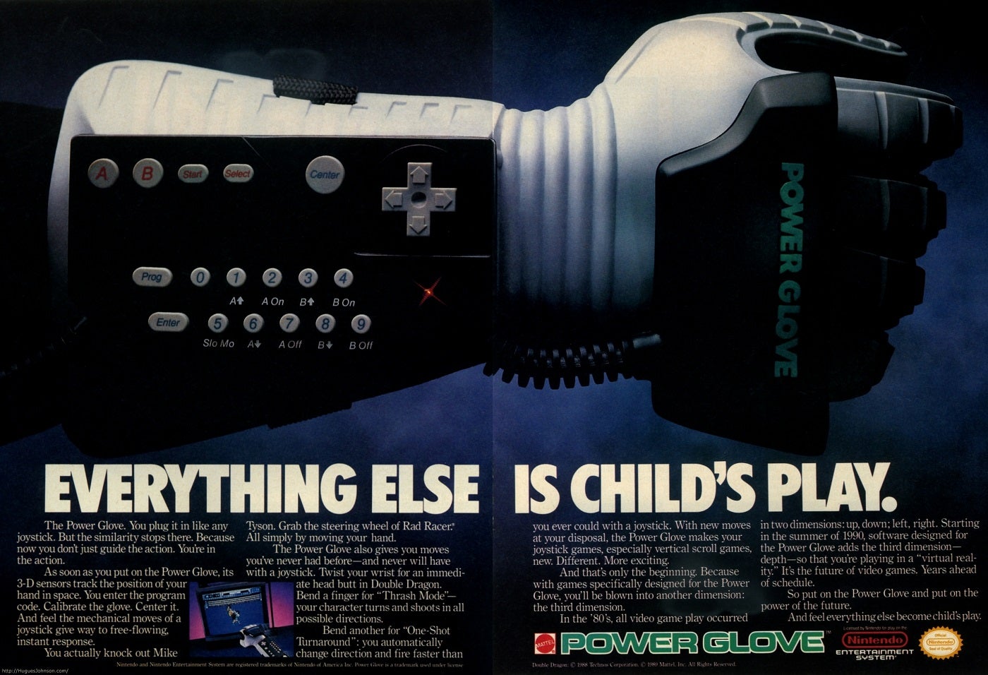 You're probably beginning to see a trend in all of these peripherals: promises of improved game control dashed against the rocky reality of shoddy technology. The Nintendo Entertainment System was home to a second painful controller hyped to children as the next coming in game control: The Power Glove. The Power Glove promised that it could read your every hand gesture and put you "in the action."