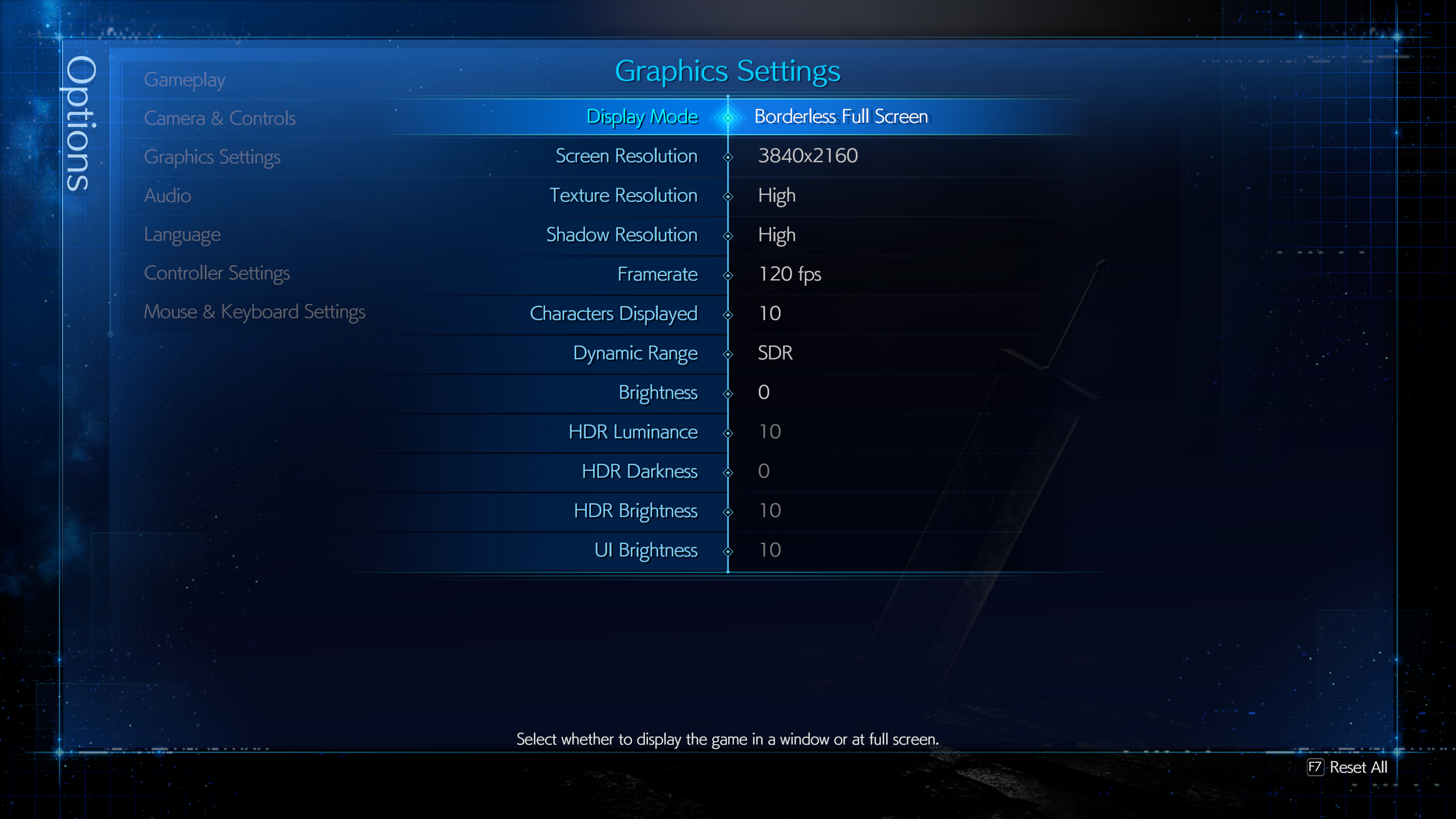 The PC graphics settings menu lets you choose between two display modes (Borderless Full Screen & Windowed), a variety of standard 16:9 resolutions from 720p up to 4K, plus two settings each (Low or High) for Texture Resolution & Shadow Resolution. There’s HDR support and the associated settings, and finally you can adjust the number of non-vital NPCs on-screen at once from zero (which might be handy for speed runners) up to ten. For frame rate, you can ask the game to target 30, 60, or 120fps. The latter is probably the biggest headline addition for PC, if you have a machine and display that can output at that refresh rate.