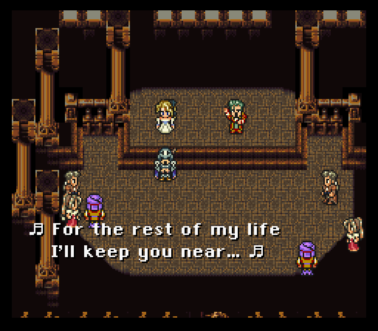 No, FFVI isn't the best Final Fantasy. It doesn't have the best story, the most ambitious presentation, the deepest mechanics, the most liberating structure, or the best-defined cast. Yet it does all of those things well -- not simply with competence, but with panache. It's the most well-rounded entry of the series, comfortable with itself and willing to push against the boundaries of technology without getting lost in spectacle. How many other RPGs would be willing to stop everything for 15 minutes so that players could take part in an opera followed by a battle in the rafters with a comic relief villain trying to drop a five-ton weight on the lead actress? And how many would then follow up such cartoon inanity a few hours later by shattering the planet with a world-ending apocalypse, leaving behind a land so bleak that monsters die on their own in combat and the heroine attempts suicide?