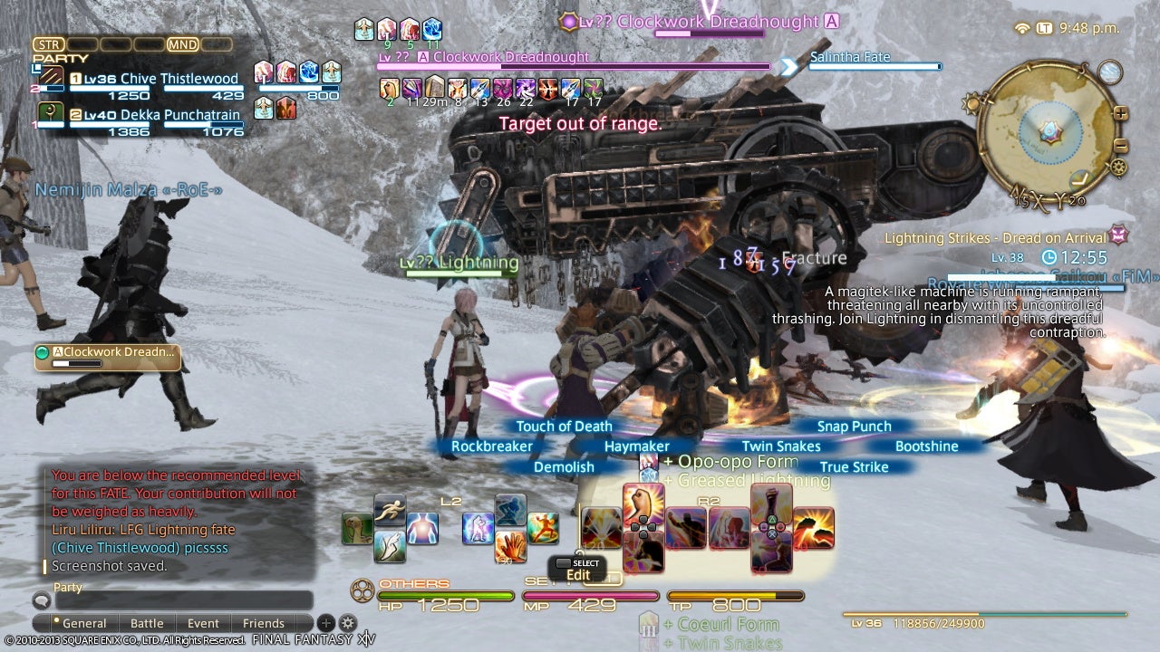 As usual, try your hardest for a Gold medal, and party up if you're having difficulty. Play your role effectively for the most credit -- heal your peers if you're a healer class, gain as much aggro as possible if you're a tank, and cause as much damage as you can as a DPS class. Plant damage over time debuffs as often as possible and keep hurling everything you've got at Aspect of Chaos until it eventually succumbs to your onslaught -- but be sure to keep an eye on Lightning's HP if you can see her amid the inevitable crowds, since she needs to remain alive for the FATE to be successful.
