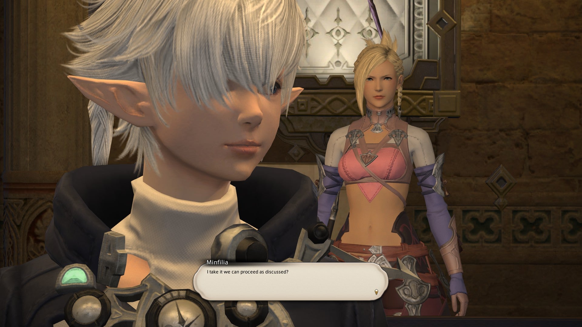 What does A Realm Reborn offer to long-serving Final Fantasy veterans? One word: fanservice. And not of the "otaku games" variety; this is Final Fantasy series fanservice we're talking about here. The game is riddled with it, whether it's the Magitek armor that primary antagonists the Garlean Empire are using; the fact that there are characters called Biggs and Wedge who fly an airship called the Tiny Bronco; or that all the example phrases used in the chat filter menu are quotes from FFVII's Cloud Strife. Structurally, the game has most in common with Final Fantasy XII's open world, but the aesthetic also calls to mind Final Fantasy VI. Someone on the team obviously likes Final Fantasy II, too, because there's a lot of "wild rose" references, and some quests even replace the usual combat music with a fantastic remix of Final Fantasy II's battle theme.