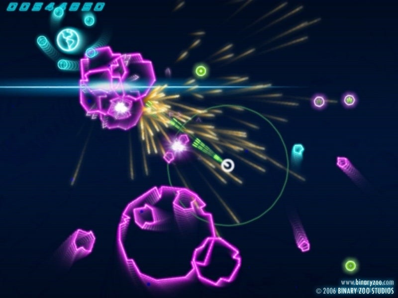 Binary Zoo describes Echoes as a modern take on Asteroids, but with its twin-stick controls and colorful, firework-esque visuals it's rather more similar to Geometry Wars than anything else. That said, it is a distinct offering from Bizarre Creations' title in numerous ways.